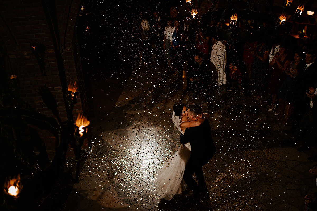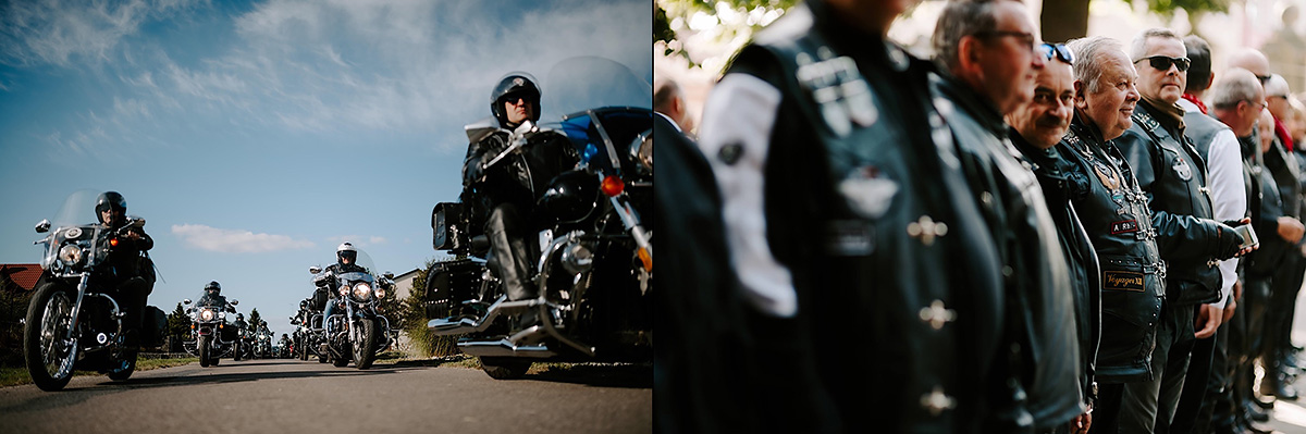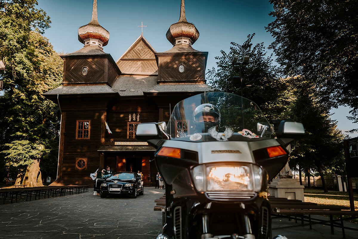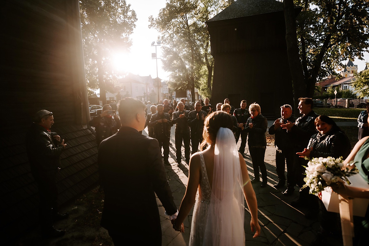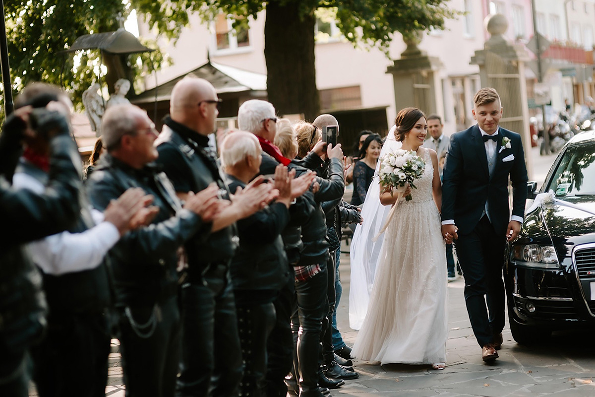 Pogodny wrzesień i pogodni Oni. Cały TEN Ich wielki dzień leciał jakoś tak… jak gdyby nic wielkiego nie miało się tego dnia wydarzyć. Nooo może poza przejażdzką do kościoła w eskorcie tysiąca motocykli. Nooo w sumie to może jeszcze poza tym, że tego dnia wyglądali wyjątkowo! Noooo i może poza tym, że tego dnia zapełnili Staropolską restaurację pod brzegi swoimi przyjaciółmi i bliskimi, którzy mało co tego miejsca nie wynieśli w kosmos. No… ok może jeszcze poza tym, że zatańczyli ze sobą ultra wyjątkowo w blasku szalonych confetti i w przepięknym stylu.