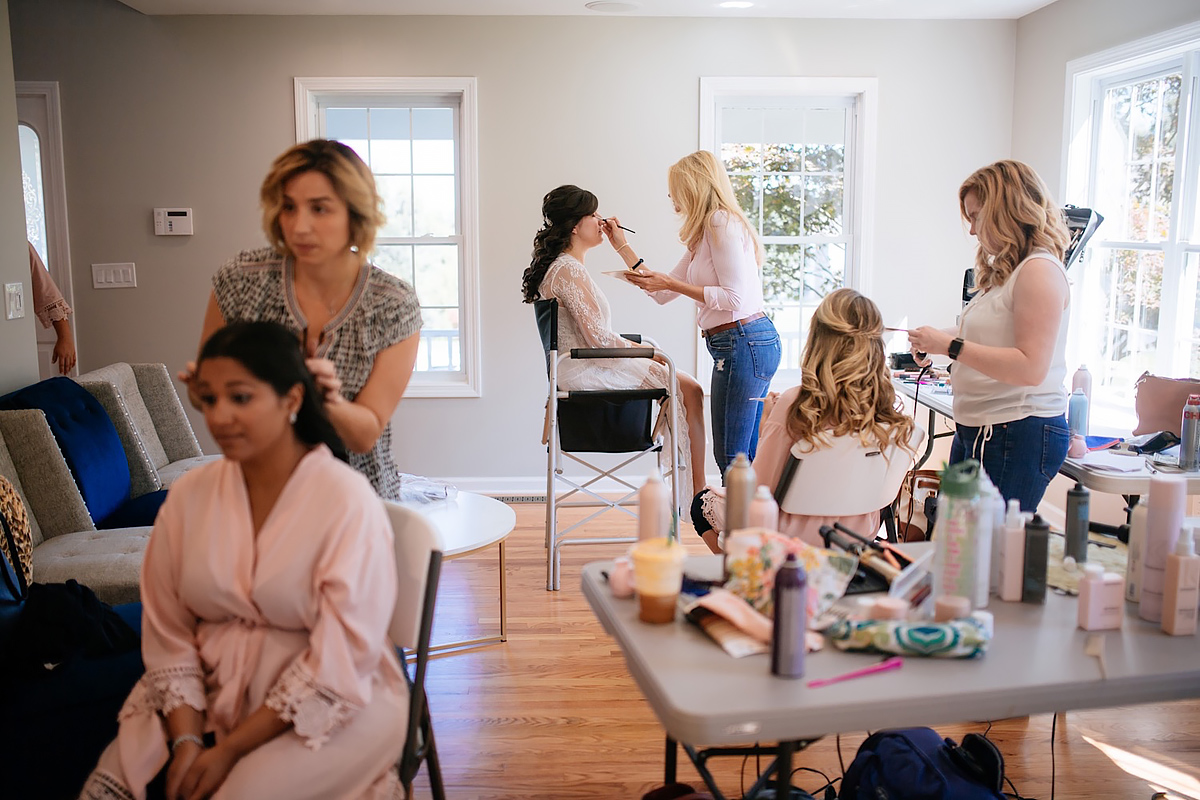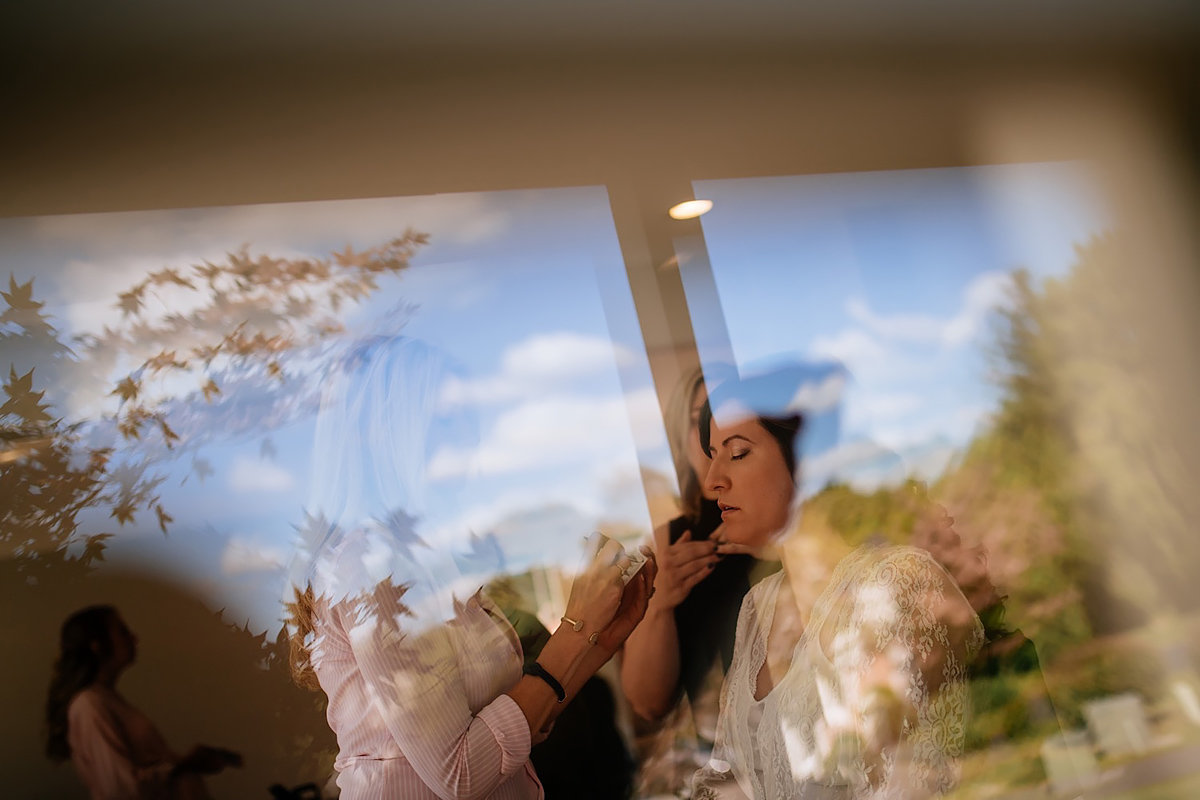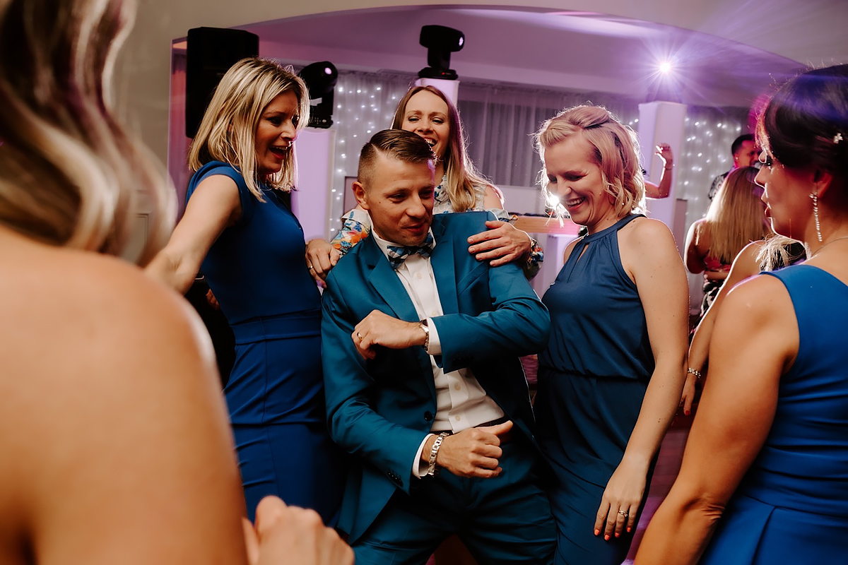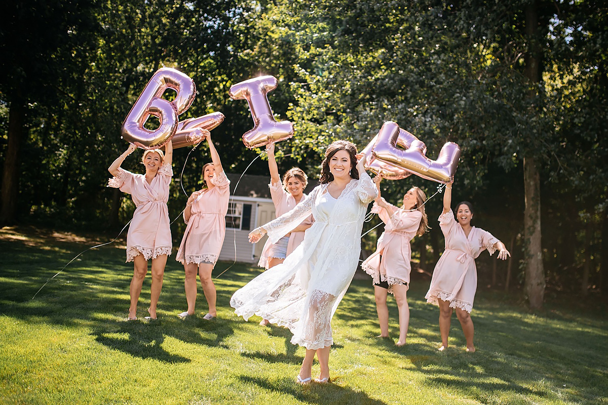 Chwilę później byłem już u Justynki. Tam sytuacja zgoła inna… sztab Pań Upiększających, niekończące się prosecco, balonowe szaleństwo i dziesiątki endorfin po tym jak Justa wskoczyła w kiecę. Genialna atmosfera!