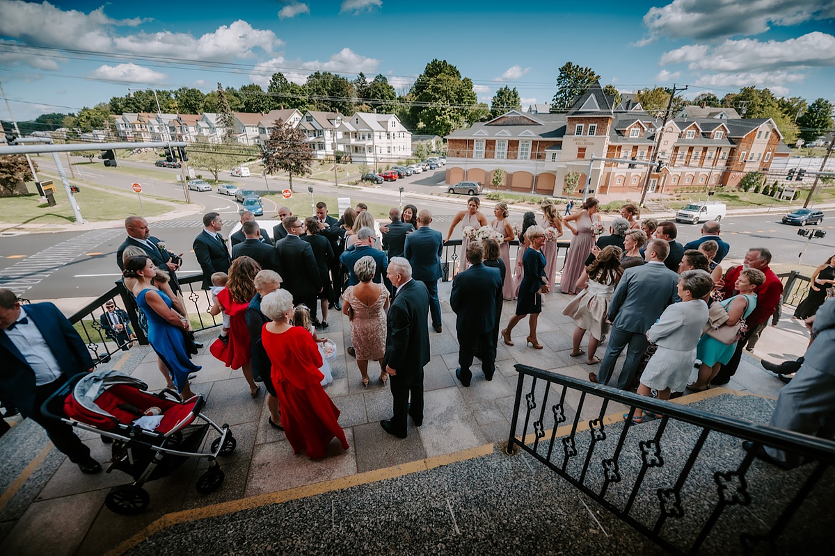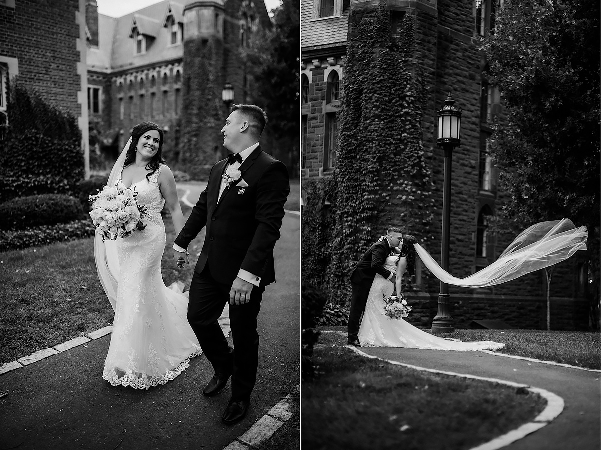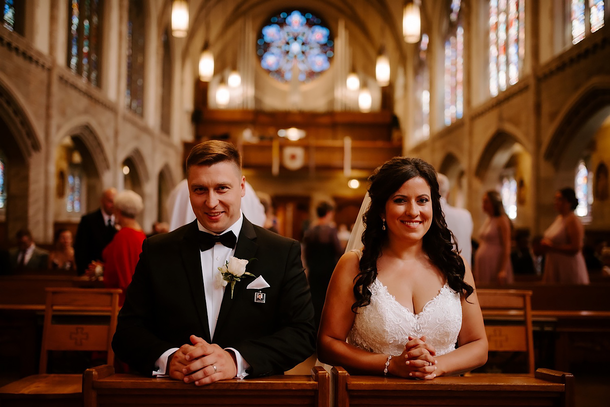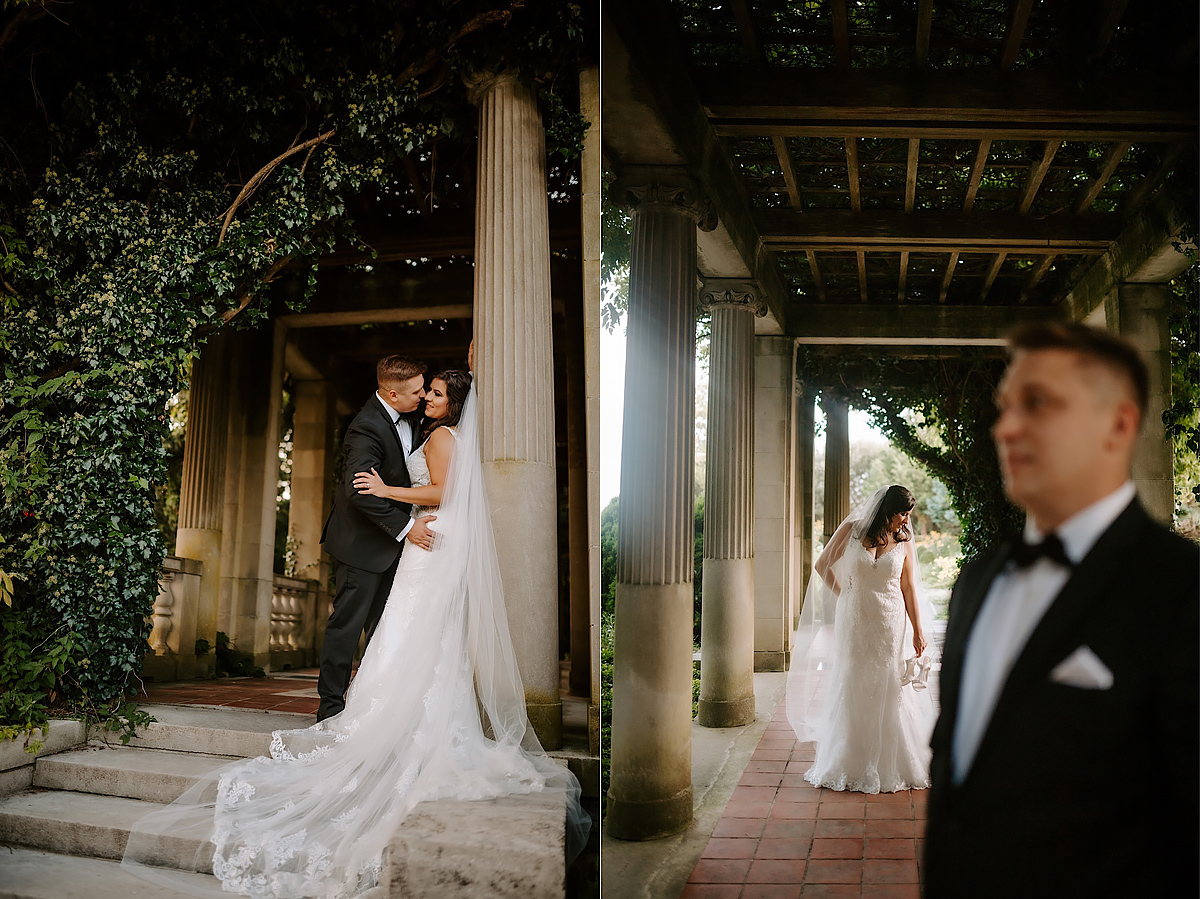 Po raz pierwszy zobaczyli się na ołtarzu i Ich iskry w oczach mało co nie spaliły kościoła! Ceremonia przebiegła spokojnie. Cichaczem wymieniane spojrzenia, obrączki wylądowały na dobrych palcach i rękach :D Wszystko ideolo! Po wszystkim wesoła przejażdżka wesołym samochodzikiem pełnym procentów i dzikich pieśni weselnych na sesję z dróżkami i całą resztą ekipy do Trinity College w Hartford. Jak to przystało na takie sesje milion szybkich Krejzolskich pomysłów i niedoczekanie do rozpoczęcia imprezy.