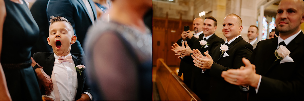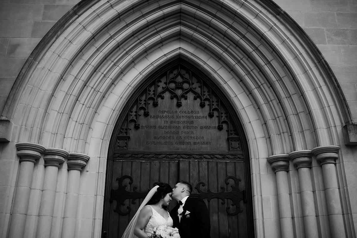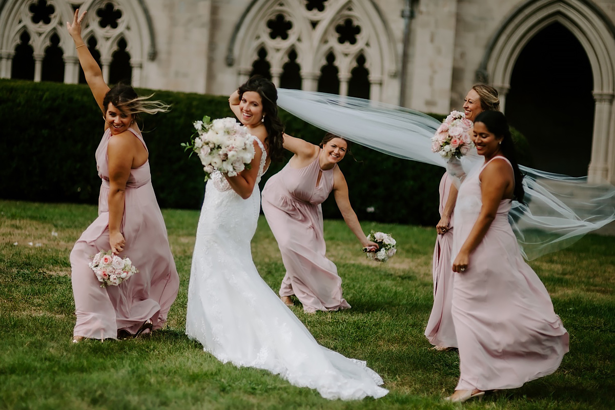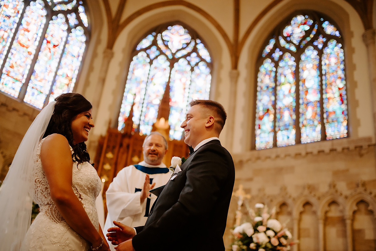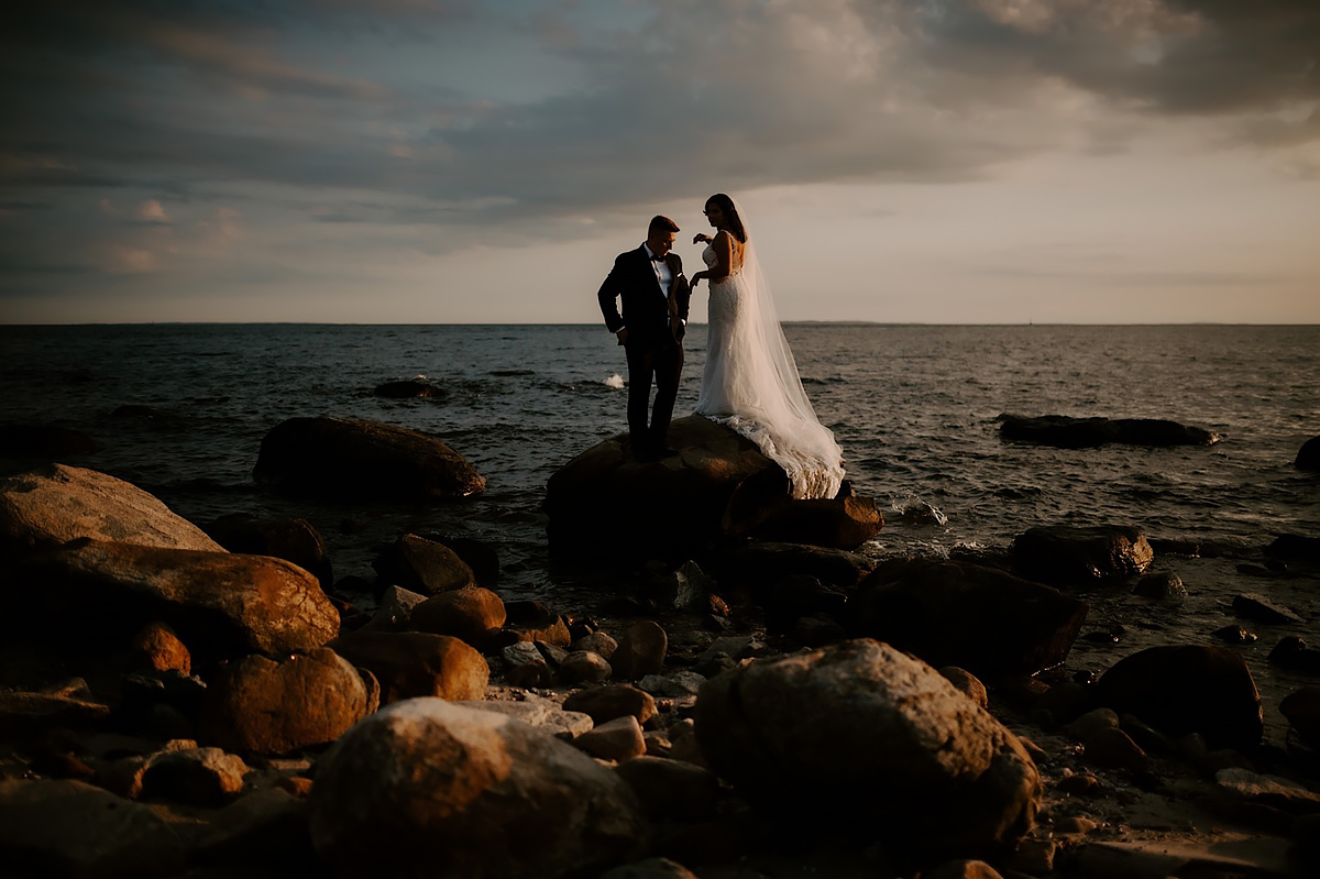 Po raz pierwszy zobaczyli się na ołtarzu i Ich iskry w oczach mało co nie spaliły kościoła! Ceremonia przebiegła spokojnie. Cichaczem wymieniane spojrzenia, obrączki wylądowały na dobrych palcach i rękach :D Wszystko ideolo! Po wszystkim wesoła przejażdżka wesołym samochodzikiem pełnym procentów i dzikich pieśni weselnych na sesję z dróżkami i całą resztą ekipy do Trinity College w Hartford. Jak to przystało na takie sesje milion szybkich Krejzolskich pomysłów i niedoczekanie do rozpoczęcia imprezy.