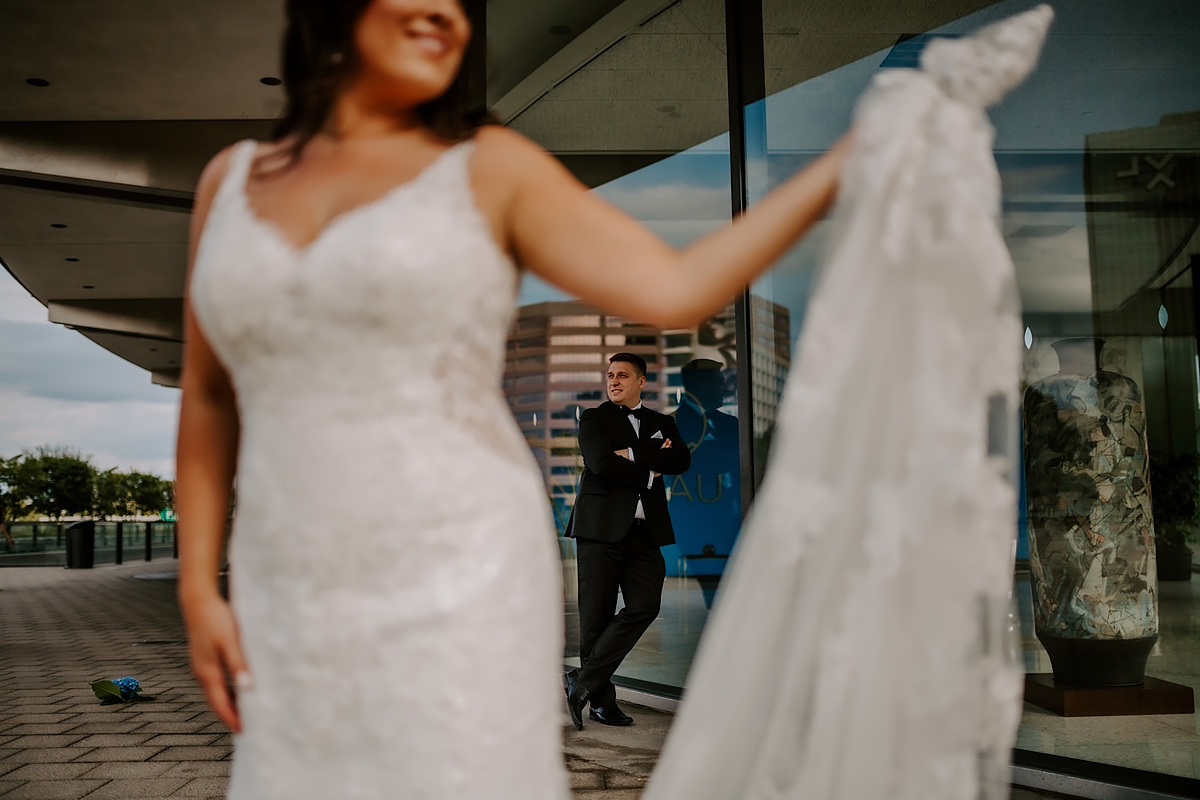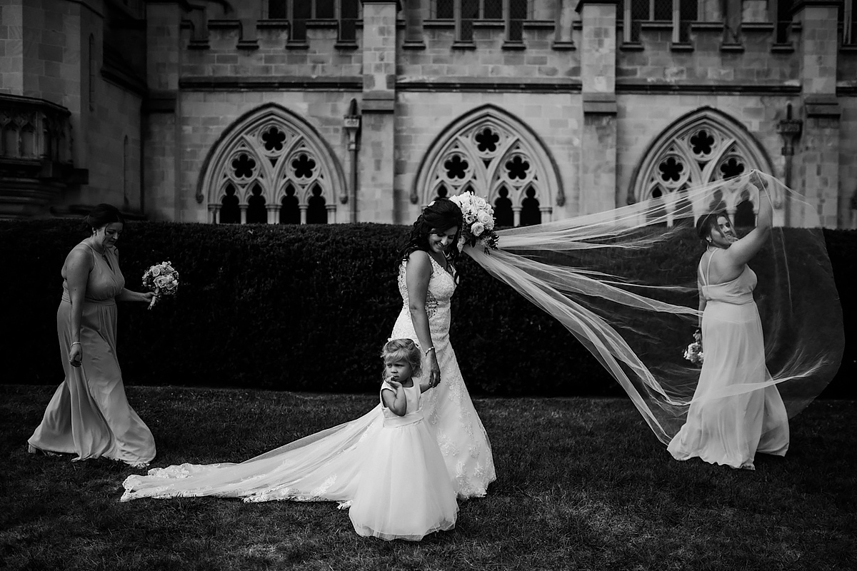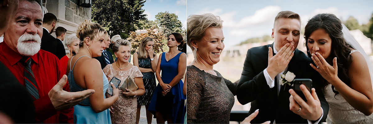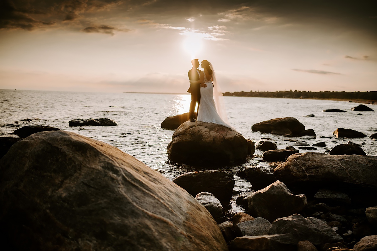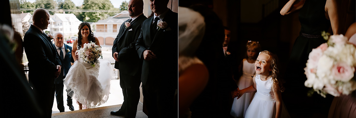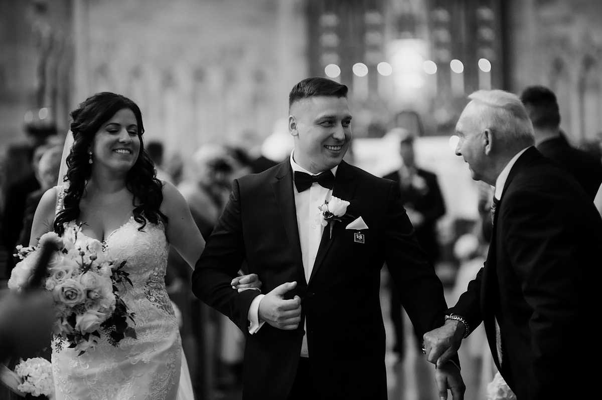 Po raz pierwszy zobaczyli się na ołtarzu i Ich iskry w oczach mało co nie spaliły kościoła! Ceremonia przebiegła spokojnie. Cichaczem wymieniane spojrzenia, obrączki wylądowały na dobrych palcach i rękach :D Wszystko ideolo! Po wszystkim wesoła przejażdżka wesołym samochodzikiem pełnym procentów i dzikich pieśni weselnych na sesję z dróżkami i całą resztą ekipy do Trinity College w Hartford. Jak to przystało na takie sesje milion szybkich Krejzolskich pomysłów i niedoczekanie do rozpoczęcia imprezy.