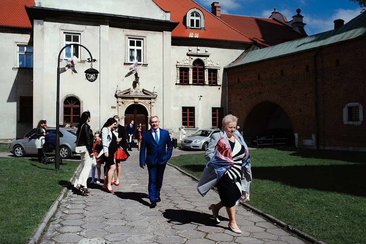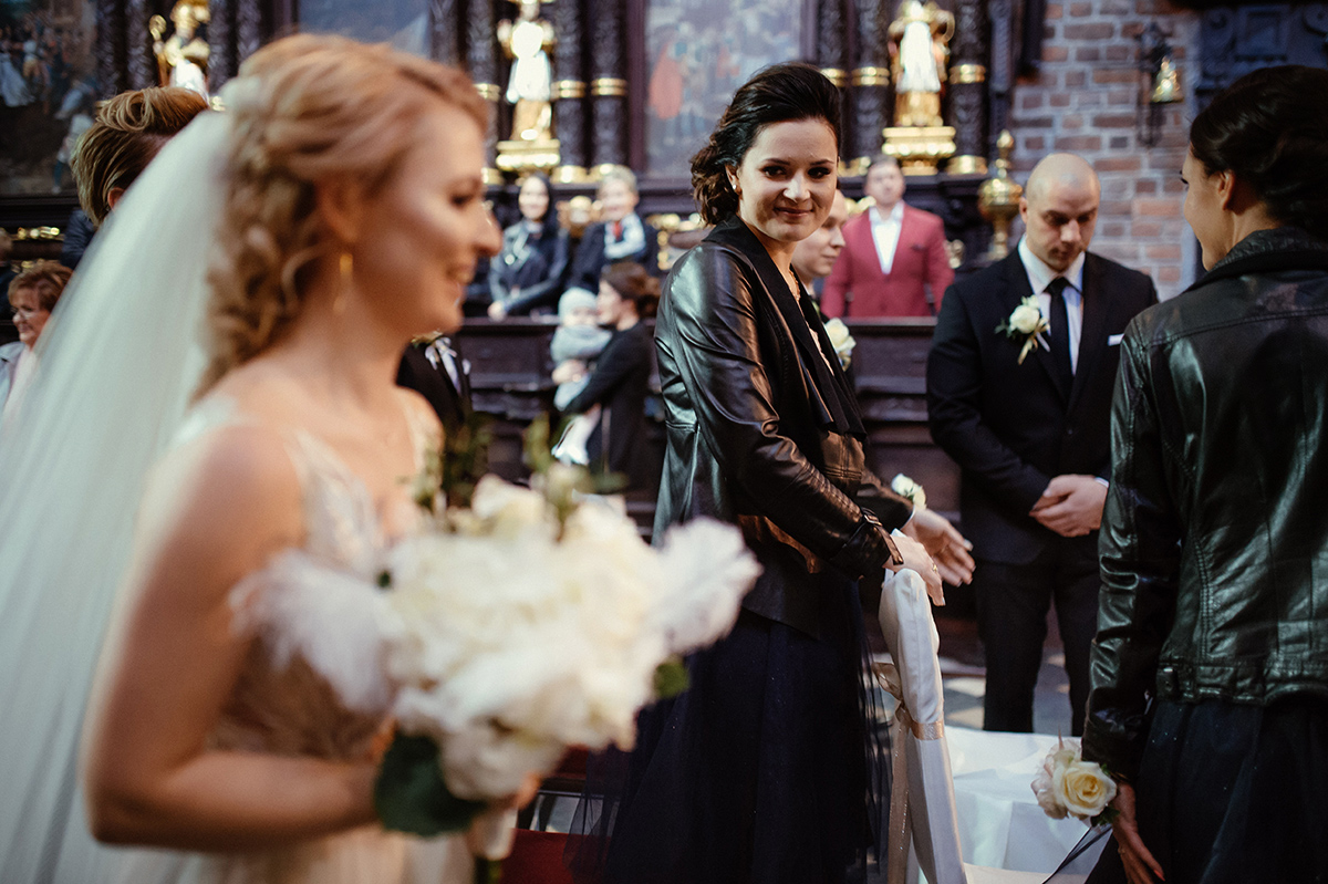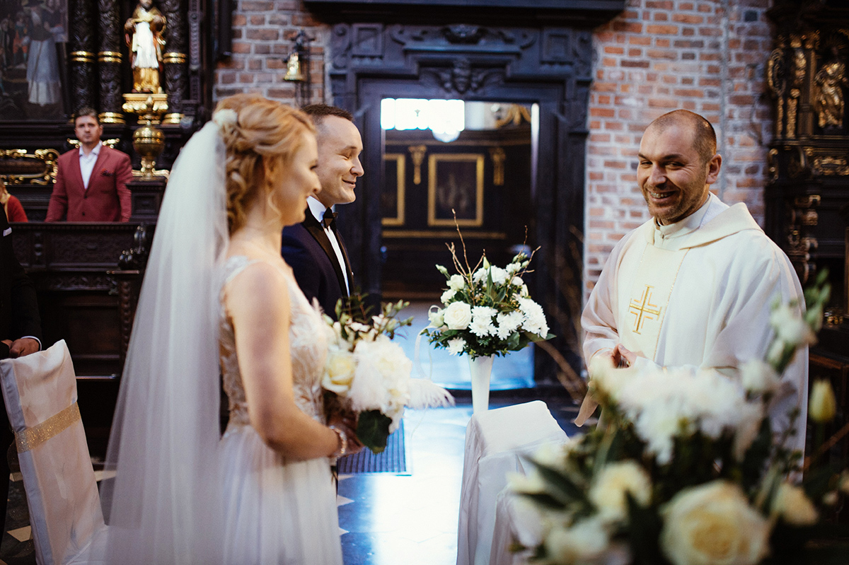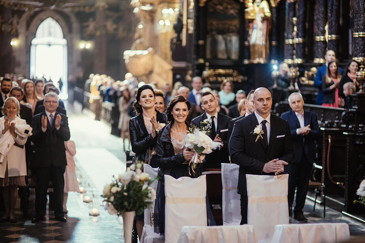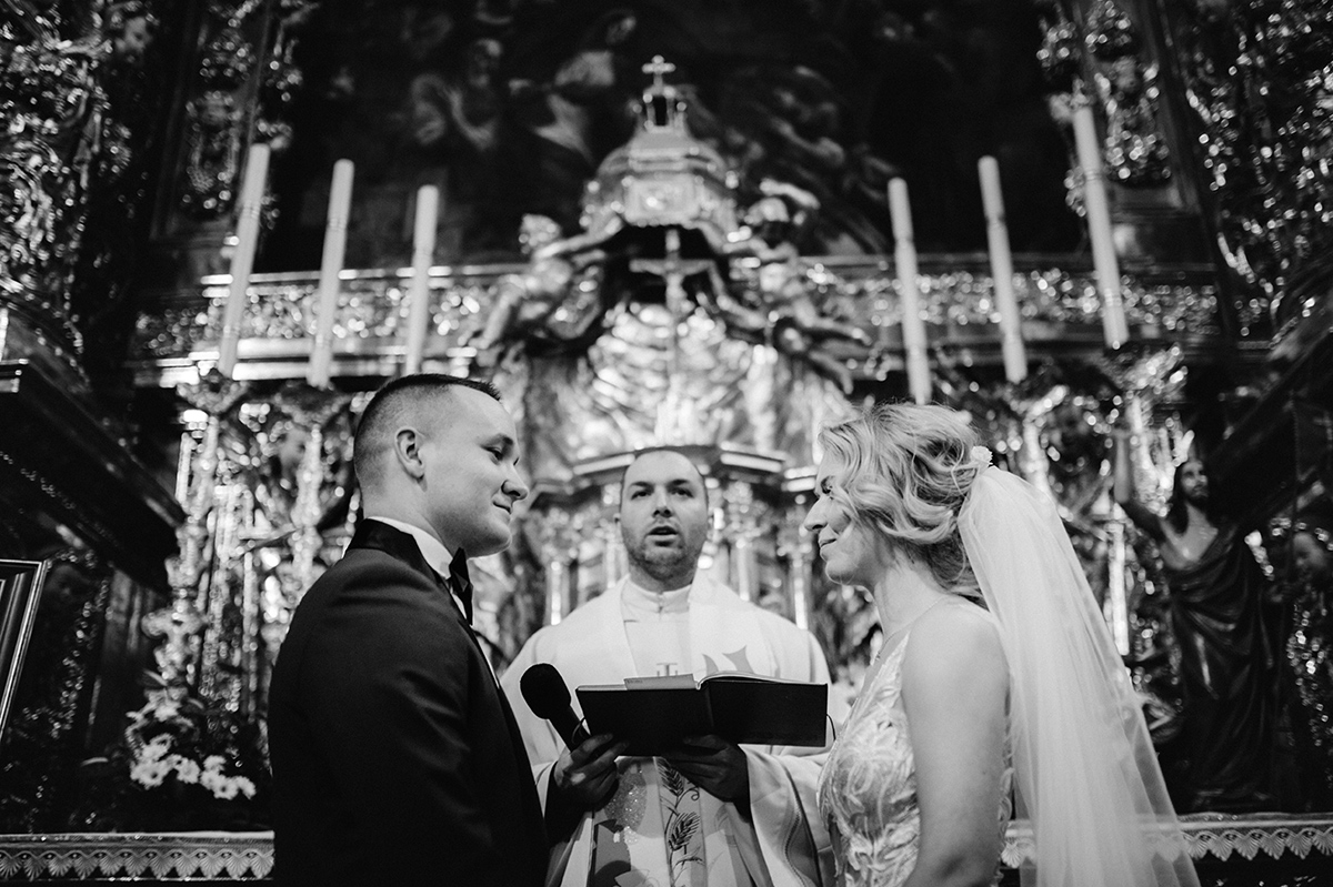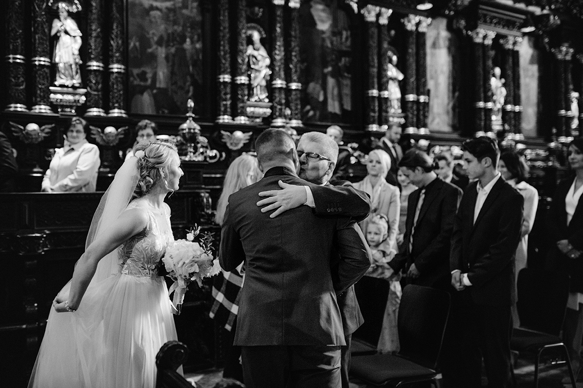 Majówkowo się działo tym razem i dość krakowsko. Wielkie ‘tak’ w pięknym ‘kazimierzowskim’ kościele powiedzieli sobie śliczna Monia i chłopak o cudnym imieniu Andrzej ( :D ). Rozpoczęło się klasycznie od szpiegowania podczas robienia się na bóstwo. Najpierw u Andrzej, któremu pomagał świadek Andrzej. Także łatwo sobie wyobrazić co się działo kiedy ktoś zawołał Andrzeja! We trzech szliśmy ;D Kiedy już Pan Młody mógł śmiało popatrzeć w lustro i powiedzieć “Cześć Przystojniaku” popędziłem do Moni. U Niej absolutny chill out i zero stresu. Wspomagały Ją kochane świadkowe, które „robiły” się pięterko niżej. Kilka maźnięć pędzlem, we frunięcie w piórkową piękną suknię i gotowa Gwiazda! Chwilę później już leciała razem ze swoją Kochaną Świadkową na Kazimierz w przypadkowej obstawie wesołych jednośladów. Samo wejście do kościoła było mocno wyjątkowe. Młodzi postanowili, że zobaczą się po raz pierwszy tego dnia dopiero przy ołtarzu. Wesołej niepewności troszkę było kiedy organy zaczęły grać a Panny Młodej nie było widać… ale jednak zdecydowała się wpaść na chwilę! ( ;D ) Uroczystość mocno wesoła i radosna z wielką porcją endorfin w powietrzu. Kiedy już wymienili się obrączkami popędzili swoim białym dyliżansem do Gościńca Banasiówka gdzie odbyły się szalone harce. Już po pierwszej krejzolskim tańcu było wiadome, że będzie się działo dużo i wesoło! Zapraszam!