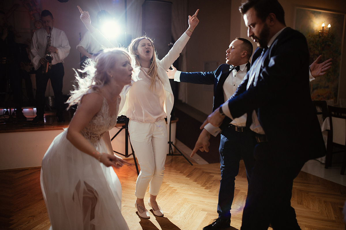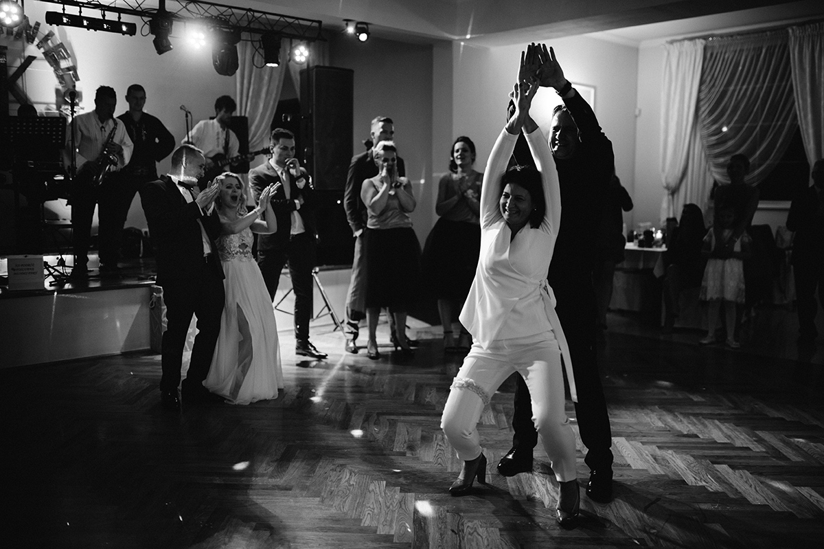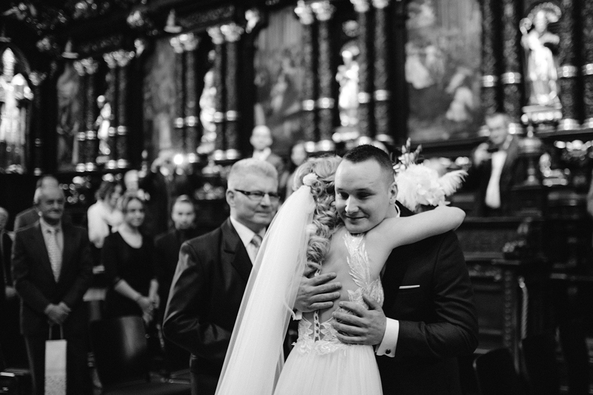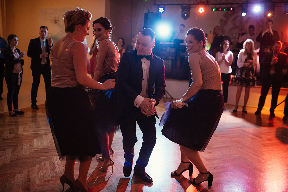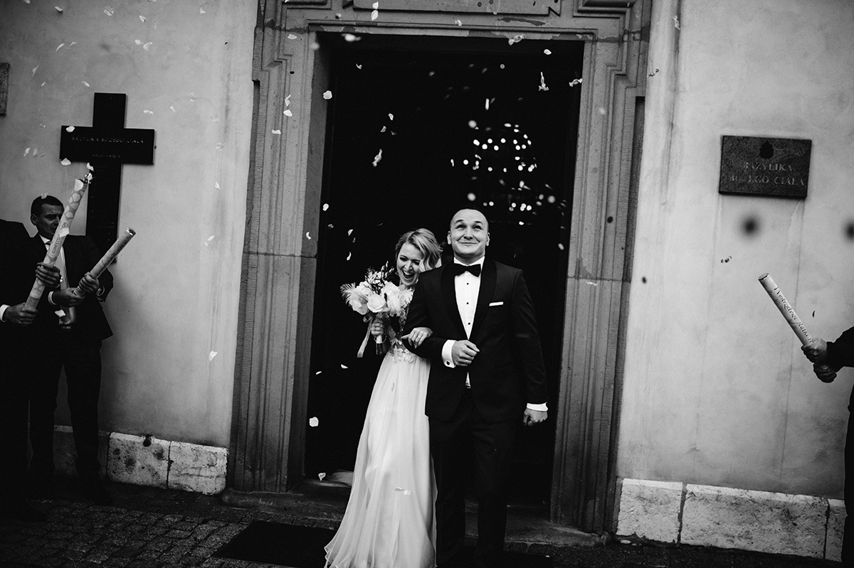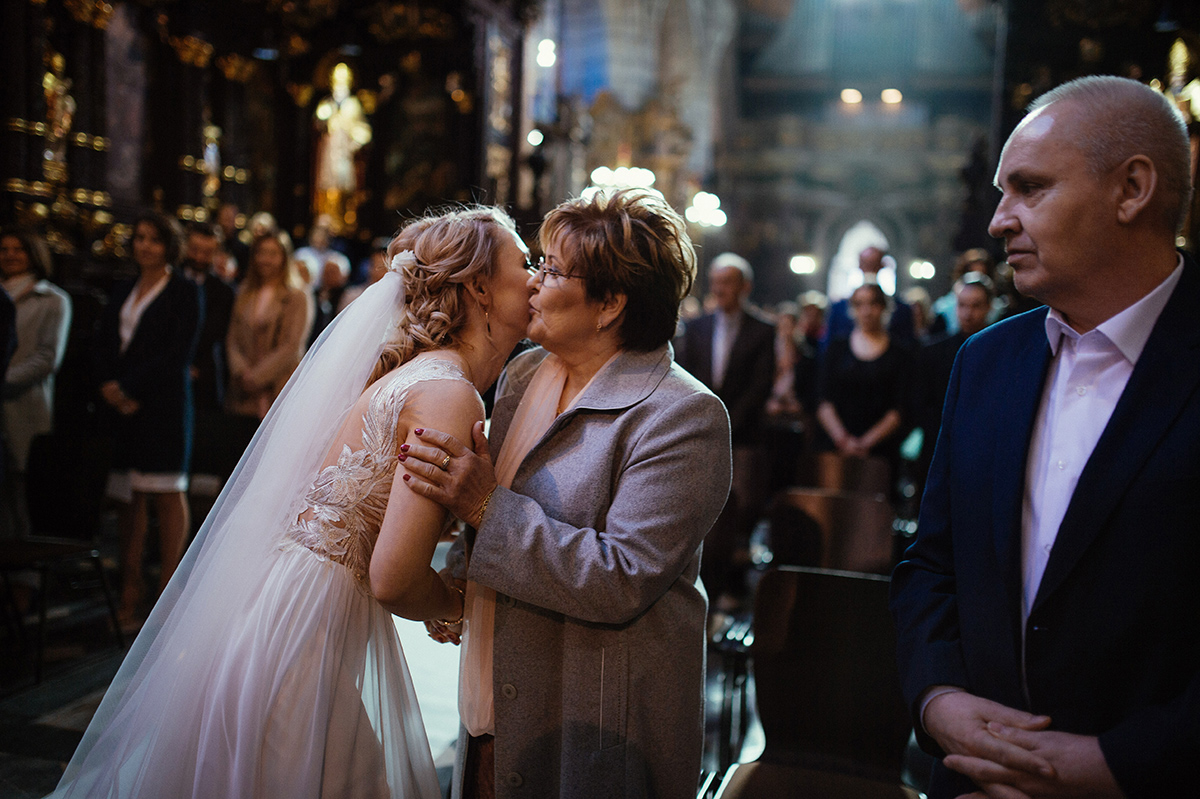 Majówkowo się działo tym razem i dość krakowsko. Wielkie ‘tak’ w pięknym ‘kazimierzowskim’ kościele powiedzieli sobie śliczna Monia i chłopak o cudnym imieniu Andrzej ( :D ). Rozpoczęło się klasycznie od szpiegowania podczas robienia się na bóstwo. Najpierw u Andrzej, któremu pomagał świadek Andrzej. Także łatwo sobie wyobrazić co się działo kiedy ktoś zawołał Andrzeja! We trzech szliśmy ;D Kiedy już Pan Młody mógł śmiało popatrzeć w lustro i powiedzieć “Cześć Przystojniaku” popędziłem do Moni. U Niej absolutny chill out i zero stresu. Wspomagały Ją kochane świadkowe, które „robiły” się pięterko niżej. Kilka maźnięć pędzlem, we frunięcie w piórkową piękną suknię i gotowa Gwiazda! Chwilę później już leciała razem ze swoją Kochaną Świadkową na Kazimierz w przypadkowej obstawie wesołych jednośladów. Samo wejście do kościoła było mocno wyjątkowe. Młodzi postanowili, że zobaczą się po raz pierwszy tego dnia dopiero przy ołtarzu. Wesołej niepewności troszkę było kiedy organy zaczęły grać a Panny Młodej nie było widać… ale jednak zdecydowała się wpaść na chwilę! ( ;D ) Uroczystość mocno wesoła i radosna z wielką porcją endorfin w powietrzu. Kiedy już wymienili się obrączkami popędzili swoim białym dyliżansem do Gościńca Banasiówka gdzie odbyły się szalone harce. Już po pierwszej krejzolskim tańcu było wiadome, że będzie się działo dużo i wesoło! Zapraszam!