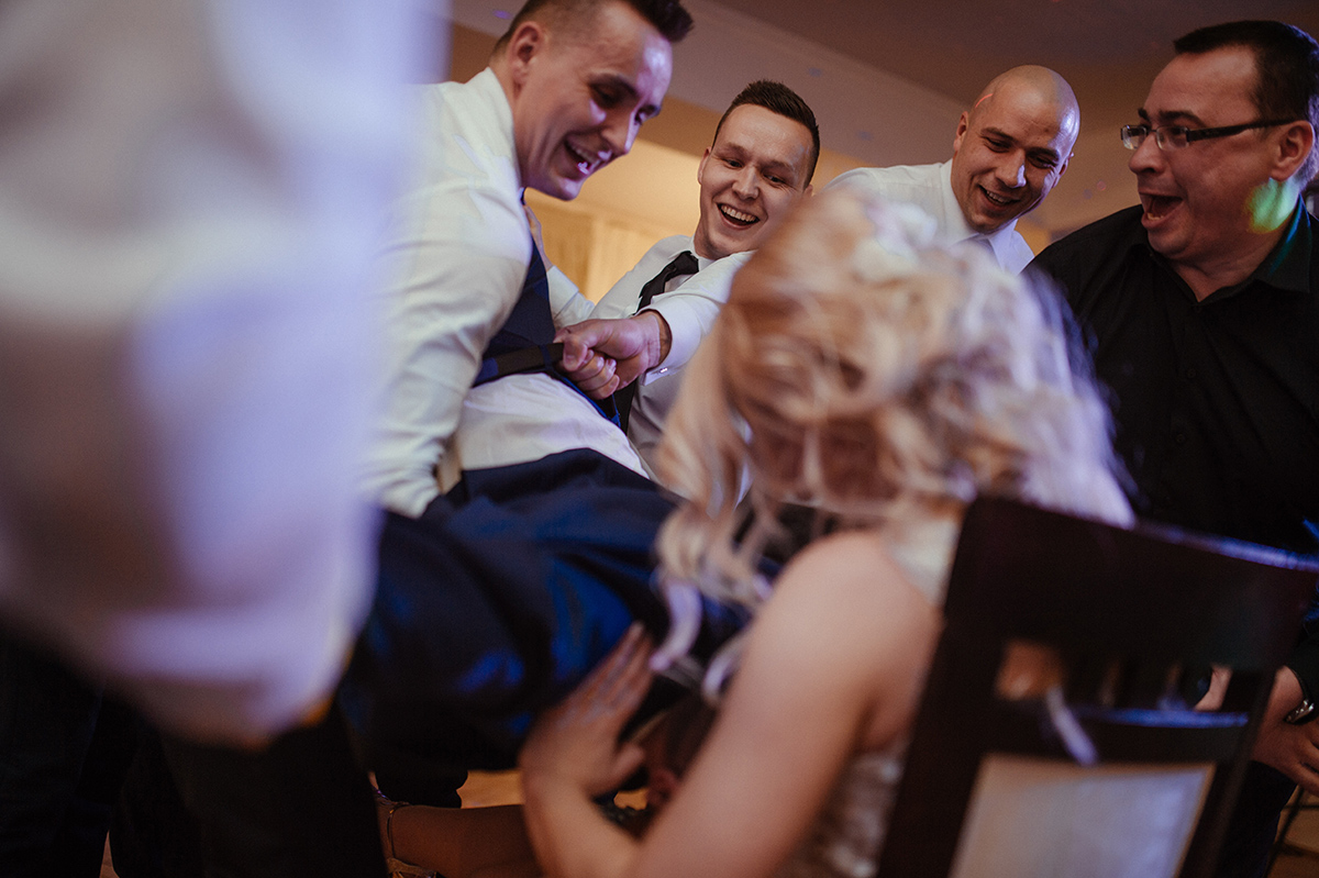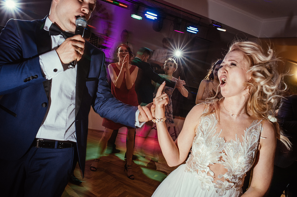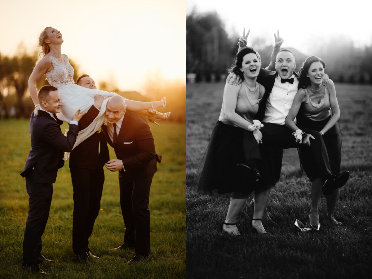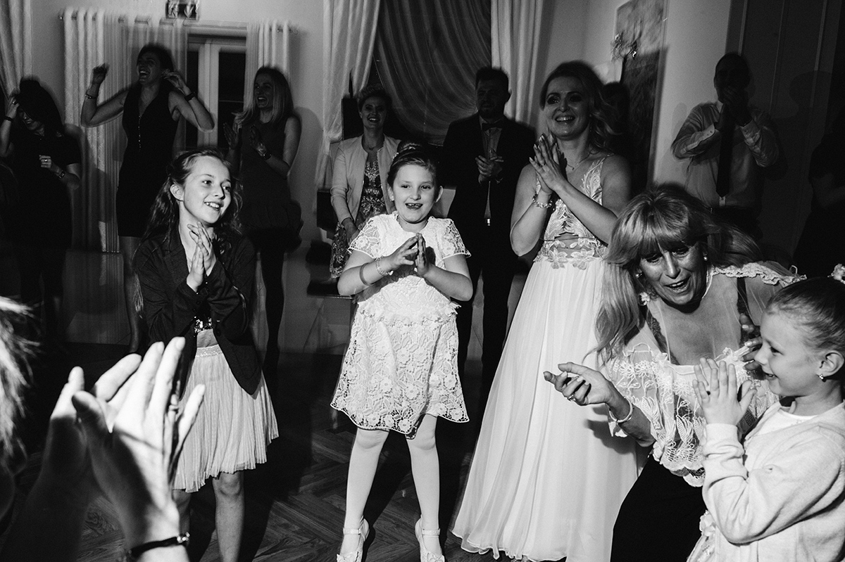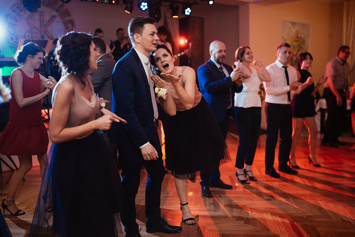 Majówkowo się działo tym razem i dość krakowsko. Wielkie ‘tak’ w pięknym ‘kazimierzowskim’ kościele powiedzieli sobie śliczna Monia i chłopak o cudnym imieniu Andrzej ( :D ). Rozpoczęło się klasycznie od szpiegowania podczas robienia się na bóstwo. Najpierw u Andrzej, któremu pomagał świadek Andrzej. Także łatwo sobie wyobrazić co się działo kiedy ktoś zawołał Andrzeja! We trzech szliśmy ;D Kiedy już Pan Młody mógł śmiało popatrzeć w lustro i powiedzieć “Cześć Przystojniaku” popędziłem do Moni. U Niej absolutny chill out i zero stresu. Wspomagały Ją kochane świadkowe, które „robiły” się pięterko niżej. Kilka maźnięć pędzlem, we frunięcie w piórkową piękną suknię i gotowa Gwiazda! Chwilę później już leciała razem ze swoją Kochaną Świadkową na Kazimierz w przypadkowej obstawie wesołych jednośladów. Samo wejście do kościoła było mocno wyjątkowe. Młodzi postanowili, że zobaczą się po raz pierwszy tego dnia dopiero przy ołtarzu. Wesołej niepewności troszkę było kiedy organy zaczęły grać a Panny Młodej nie było widać… ale jednak zdecydowała się wpaść na chwilę! ( ;D ) Uroczystość mocno wesoła i radosna z wielką porcją endorfin w powietrzu. Kiedy już wymienili się obrączkami popędzili swoim białym dyliżansem do Gościńca Banasiówka gdzie odbyły się szalone harce. Już po pierwszej krejzolskim tańcu było wiadome, że będzie się działo dużo i wesoło! Zapraszam!