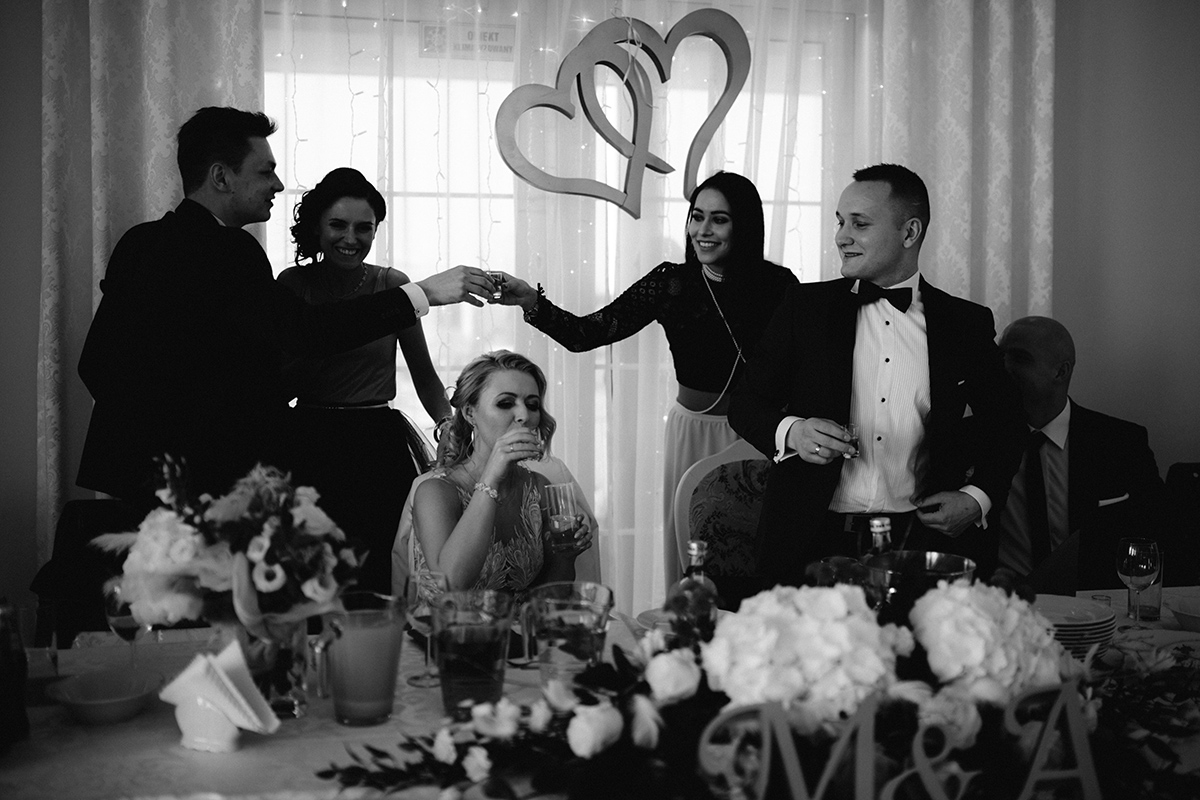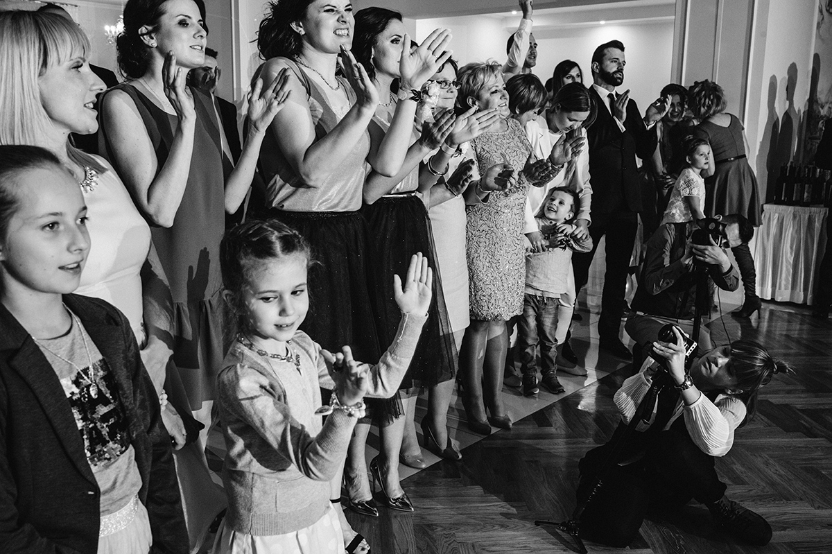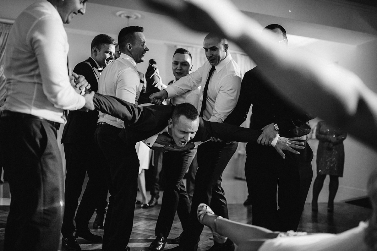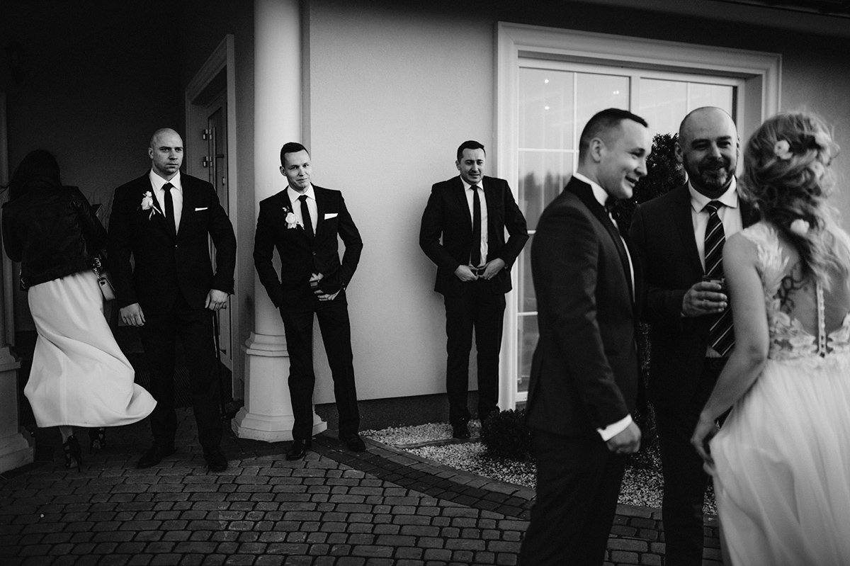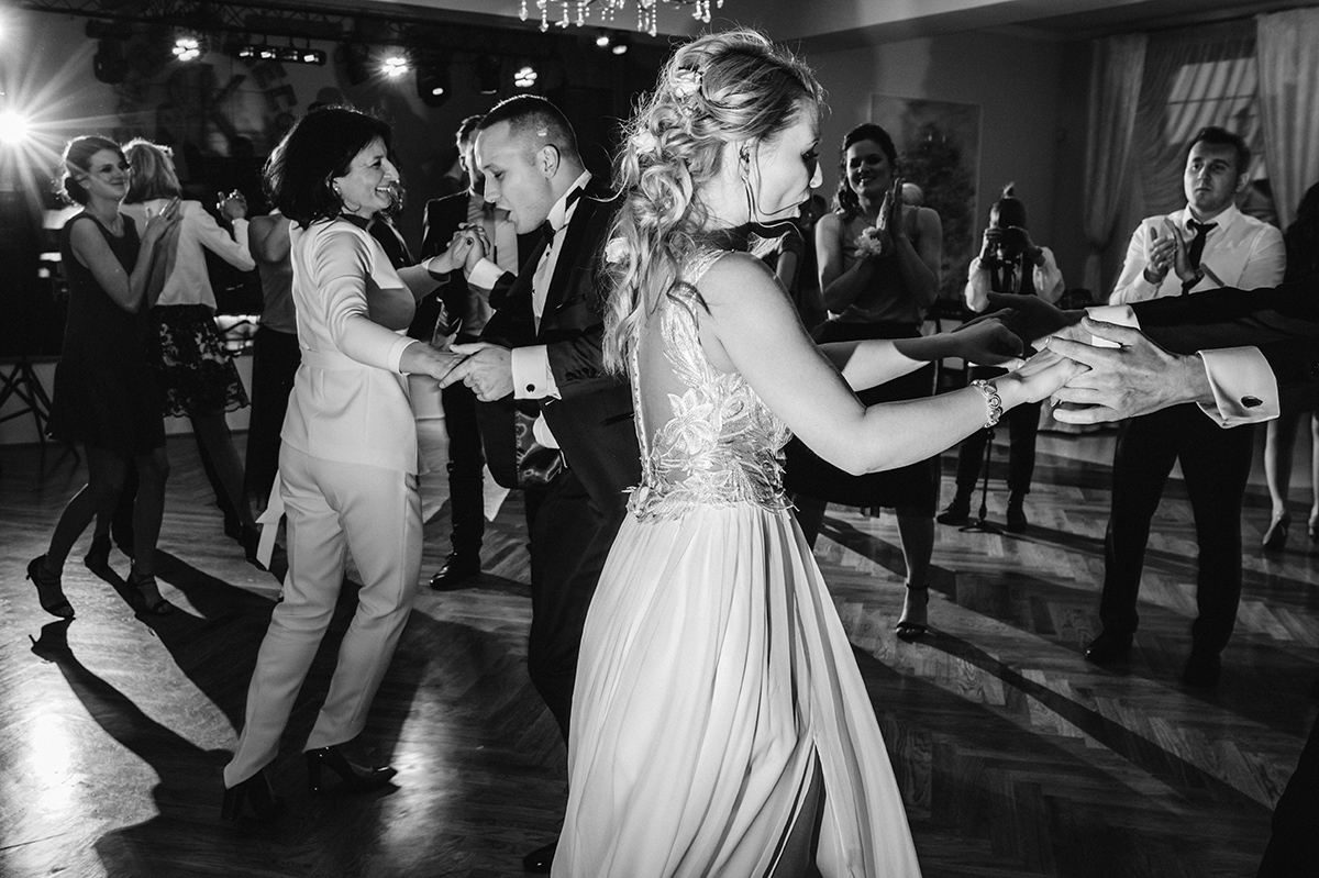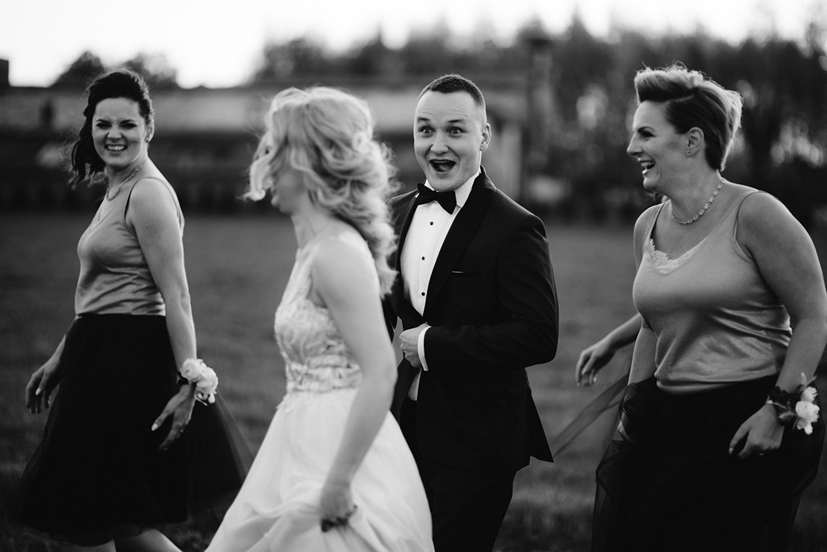 Majówkowo się działo tym razem i dość krakowsko. Wielkie ‘tak’ w pięknym ‘kazimierzowskim’ kościele powiedzieli sobie śliczna Monia i chłopak o cudnym imieniu Andrzej ( :D ). Rozpoczęło się klasycznie od szpiegowania podczas robienia się na bóstwo. Najpierw u Andrzej, któremu pomagał świadek Andrzej. Także łatwo sobie wyobrazić co się działo kiedy ktoś zawołał Andrzeja! We trzech szliśmy ;D Kiedy już Pan Młody mógł śmiało popatrzeć w lustro i powiedzieć “Cześć Przystojniaku” popędziłem do Moni. U Niej absolutny chill out i zero stresu. Wspomagały Ją kochane świadkowe, które „robiły” się pięterko niżej. Kilka maźnięć pędzlem, we frunięcie w piórkową piękną suknię i gotowa Gwiazda! Chwilę później już leciała razem ze swoją Kochaną Świadkową na Kazimierz w przypadkowej obstawie wesołych jednośladów. Samo wejście do kościoła było mocno wyjątkowe. Młodzi postanowili, że zobaczą się po raz pierwszy tego dnia dopiero przy ołtarzu. Wesołej niepewności troszkę było kiedy organy zaczęły grać a Panny Młodej nie było widać… ale jednak zdecydowała się wpaść na chwilę! ( ;D ) Uroczystość mocno wesoła i radosna z wielką porcją endorfin w powietrzu. Kiedy już wymienili się obrączkami popędzili swoim białym dyliżansem do Gościńca Banasiówka gdzie odbyły się szalone harce. Już po pierwszej krejzolskim tańcu było wiadome, że będzie się działo dużo i wesoło! Zapraszam!