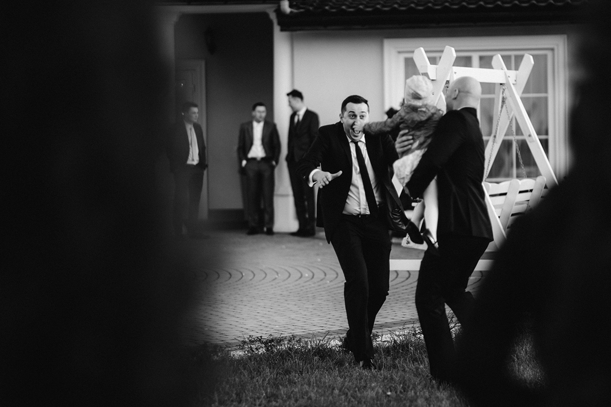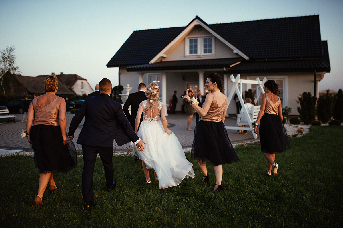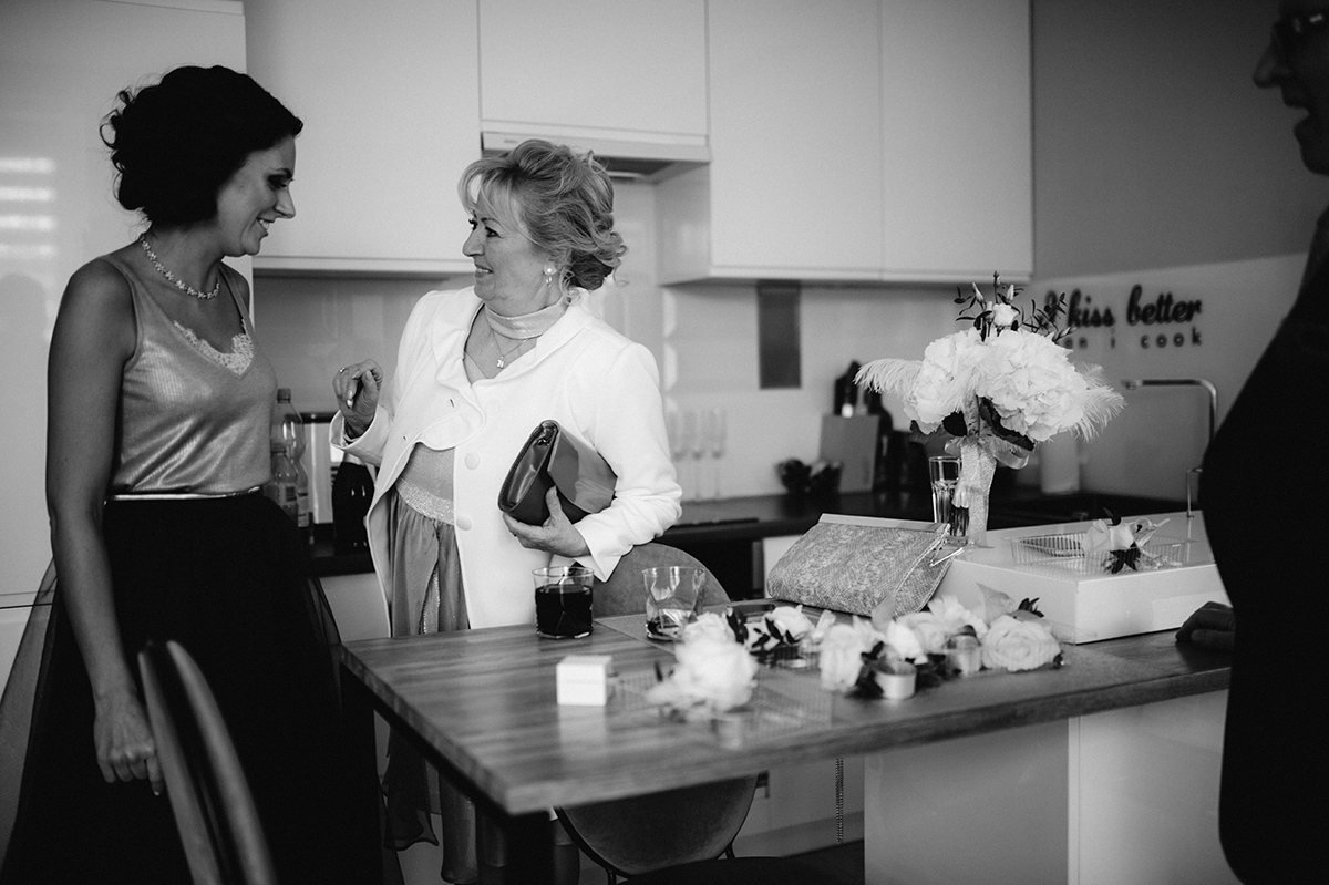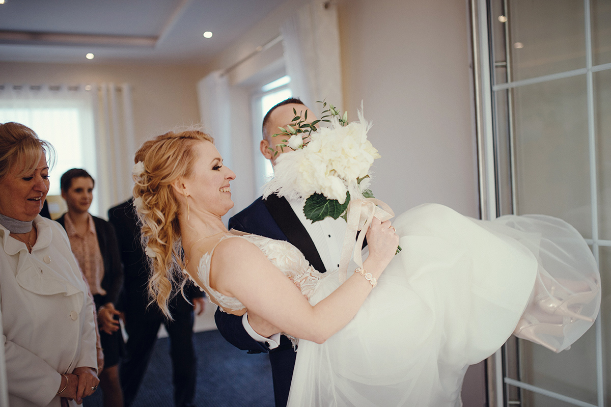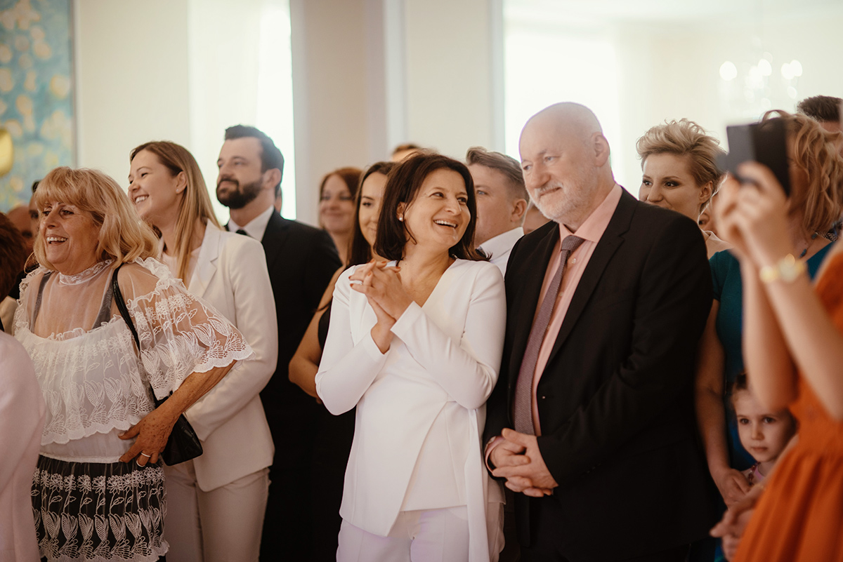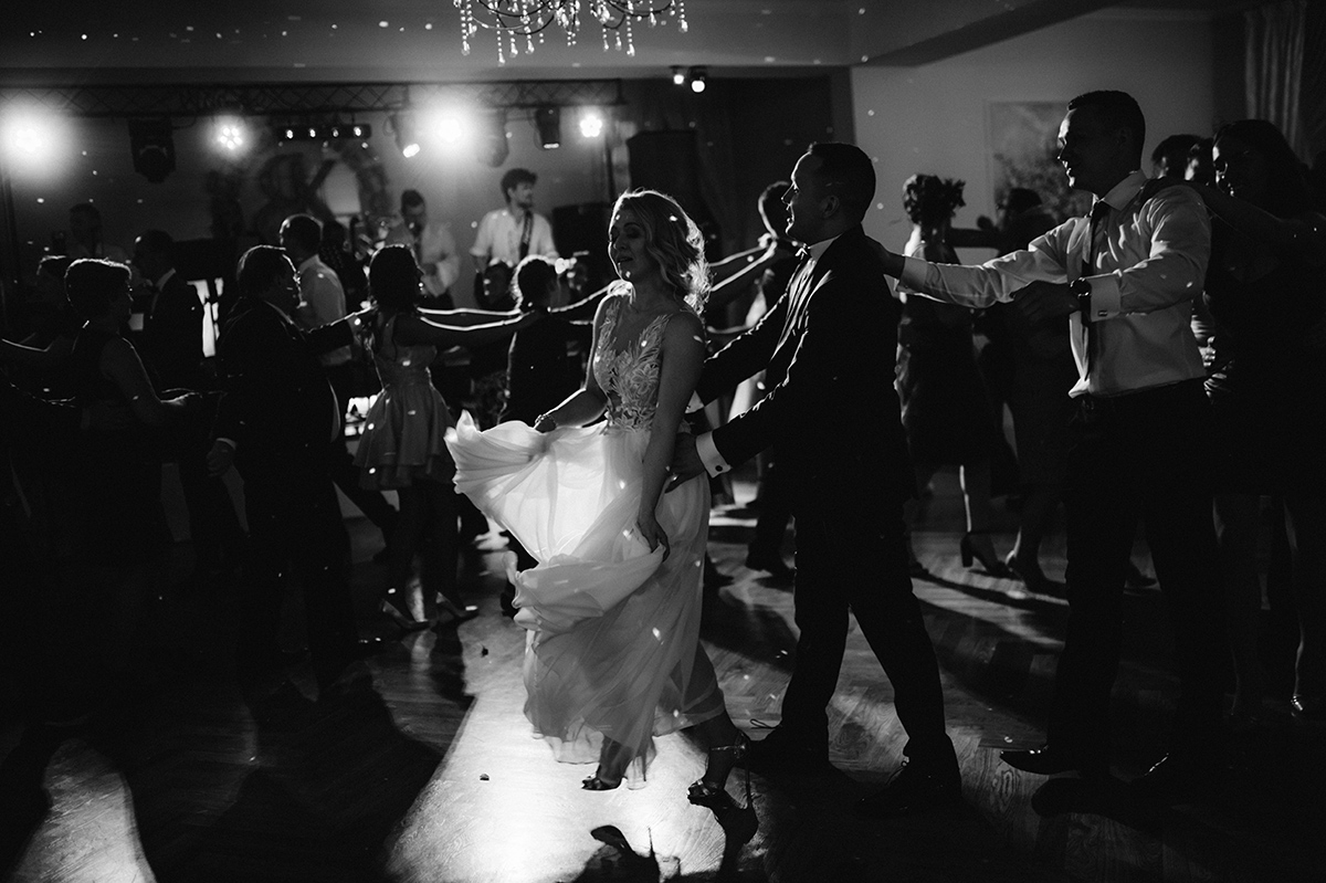 Majówkowo się działo tym razem i dość krakowsko. Wielkie ‘tak’ w pięknym ‘kazimierzowskim’ kościele powiedzieli sobie śliczna Monia i chłopak o cudnym imieniu Andrzej ( :D ). Rozpoczęło się klasycznie od szpiegowania podczas robienia się na bóstwo. Najpierw u Andrzej, któremu pomagał świadek Andrzej. Także łatwo sobie wyobrazić co się działo kiedy ktoś zawołał Andrzeja! We trzech szliśmy ;D Kiedy już Pan Młody mógł śmiało popatrzeć w lustro i powiedzieć “Cześć Przystojniaku” popędziłem do Moni. U Niej absolutny chill out i zero stresu. Wspomagały Ją kochane świadkowe, które „robiły” się pięterko niżej. Kilka maźnięć pędzlem, we frunięcie w piórkową piękną suknię i gotowa Gwiazda! Chwilę później już leciała razem ze swoją Kochaną Świadkową na Kazimierz w przypadkowej obstawie wesołych jednośladów. Samo wejście do kościoła było mocno wyjątkowe. Młodzi postanowili, że zobaczą się po raz pierwszy tego dnia dopiero przy ołtarzu. Wesołej niepewności troszkę było kiedy organy zaczęły grać a Panny Młodej nie było widać… ale jednak zdecydowała się wpaść na chwilę! ( ;D ) Uroczystość mocno wesoła i radosna z wielką porcją endorfin w powietrzu. Kiedy już wymienili się obrączkami popędzili swoim białym dyliżansem do Gościńca Banasiówka gdzie odbyły się szalone harce. Już po pierwszej krejzolskim tańcu było wiadome, że będzie się działo dużo i wesoło! Zapraszam!
