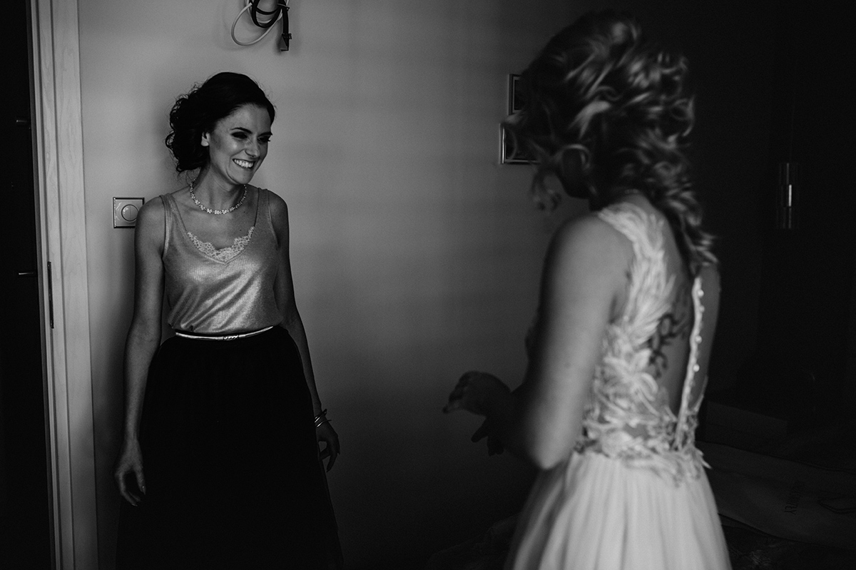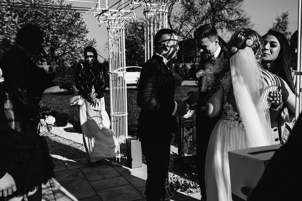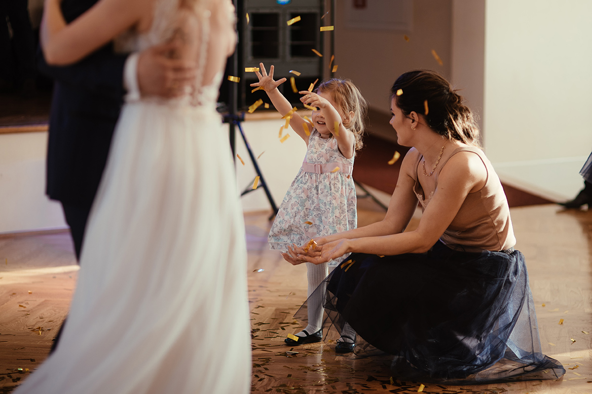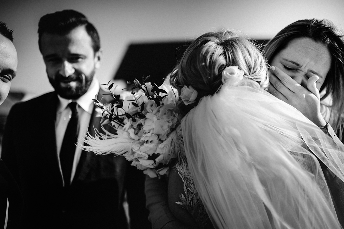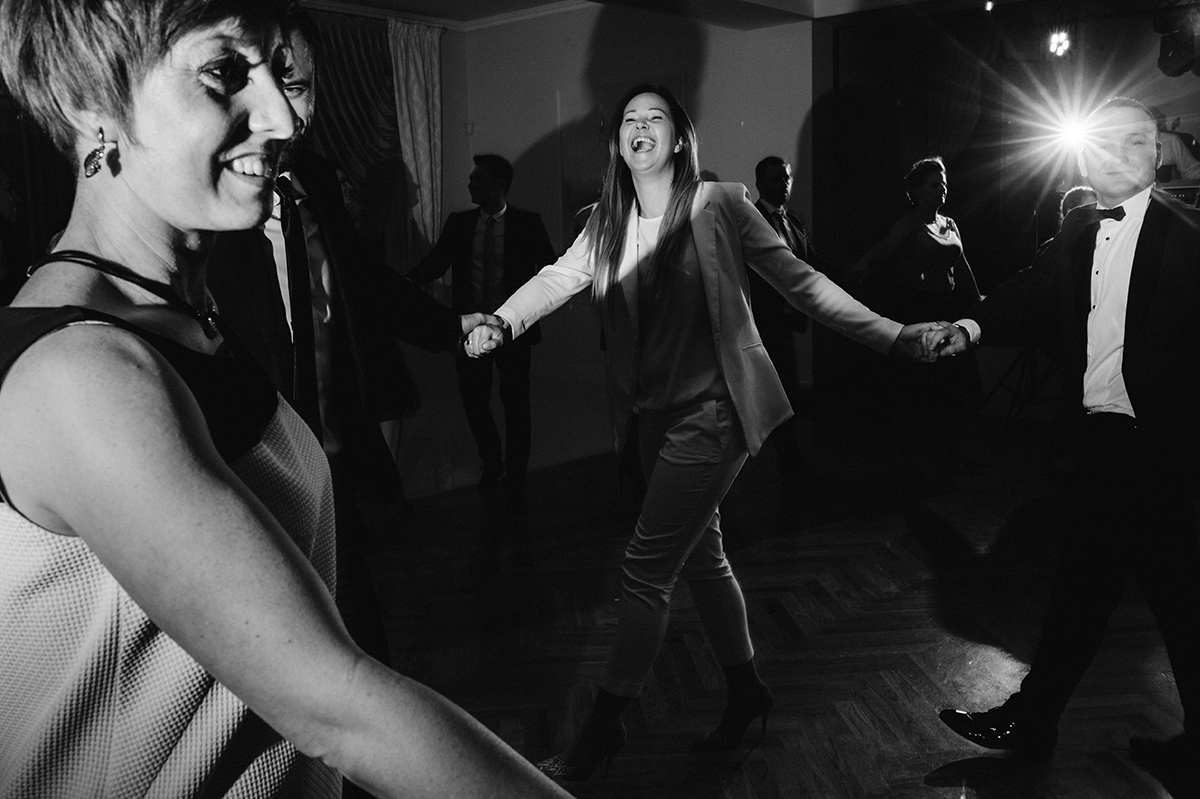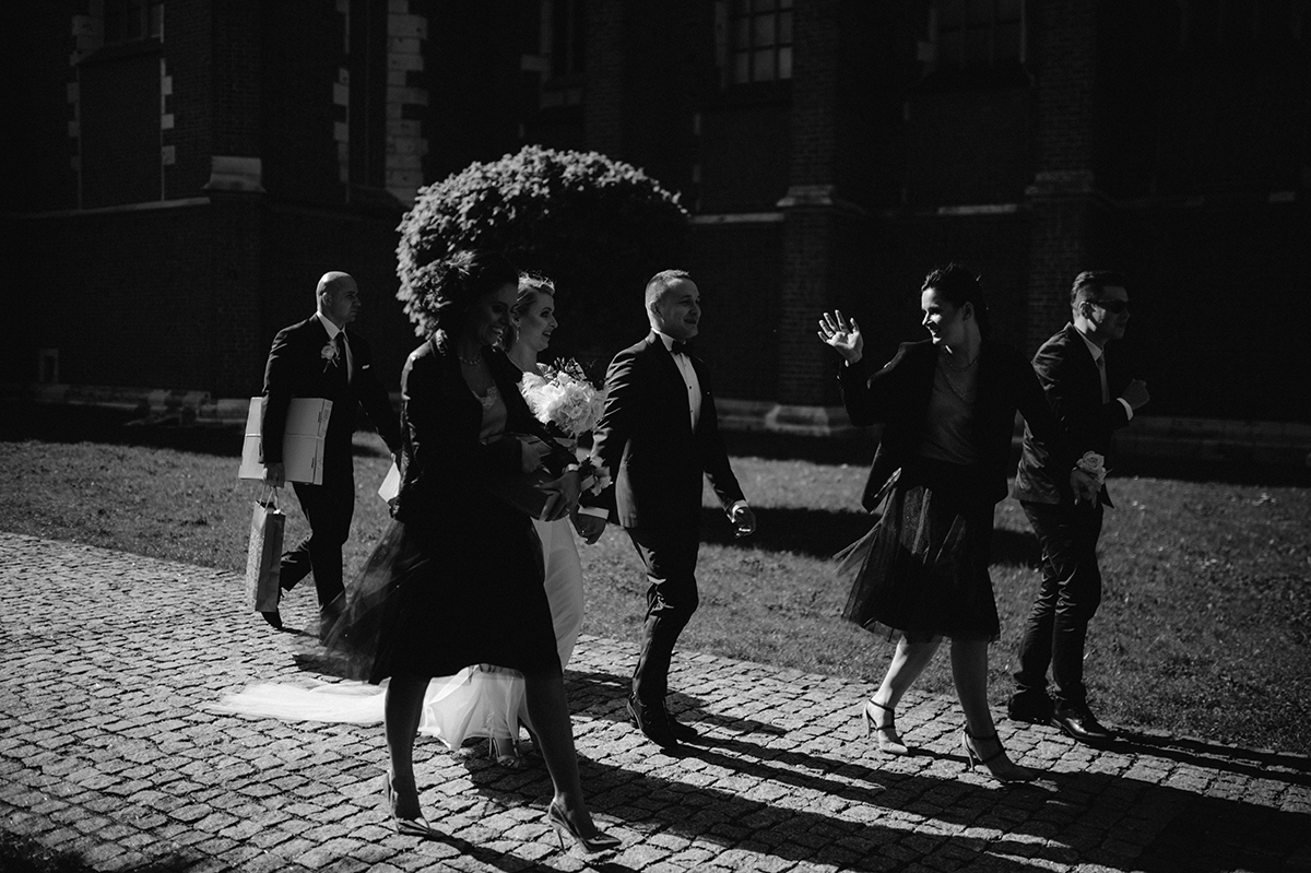 Majówkowo się działo tym razem i dość krakowsko. Wielkie ‘tak’ w pięknym ‘kazimierzowskim’ kościele powiedzieli sobie śliczna Monia i chłopak o cudnym imieniu Andrzej ( :D ). Rozpoczęło się klasycznie od szpiegowania podczas robienia się na bóstwo. Najpierw u Andrzej, któremu pomagał świadek Andrzej. Także łatwo sobie wyobrazić co się działo kiedy ktoś zawołał Andrzeja! We trzech szliśmy ;D Kiedy już Pan Młody mógł śmiało popatrzeć w lustro i powiedzieć “Cześć Przystojniaku” popędziłem do Moni. U Niej absolutny chill out i zero stresu. Wspomagały Ją kochane świadkowe, które „robiły” się pięterko niżej. Kilka maźnięć pędzlem, we frunięcie w piórkową piękną suknię i gotowa Gwiazda! Chwilę później już leciała razem ze swoją Kochaną Świadkową na Kazimierz w przypadkowej obstawie wesołych jednośladów. Samo wejście do kościoła było mocno wyjątkowe. Młodzi postanowili, że zobaczą się po raz pierwszy tego dnia dopiero przy ołtarzu. Wesołej niepewności troszkę było kiedy organy zaczęły grać a Panny Młodej nie było widać… ale jednak zdecydowała się wpaść na chwilę! ( ;D ) Uroczystość mocno wesoła i radosna z wielką porcją endorfin w powietrzu. Kiedy już wymienili się obrączkami popędzili swoim białym dyliżansem do Gościńca Banasiówka gdzie odbyły się szalone harce. Już po pierwszej krejzolskim tańcu było wiadome, że będzie się działo dużo i wesoło! Zapraszam!