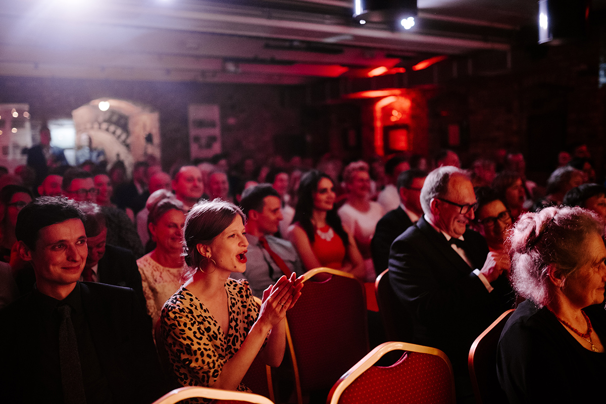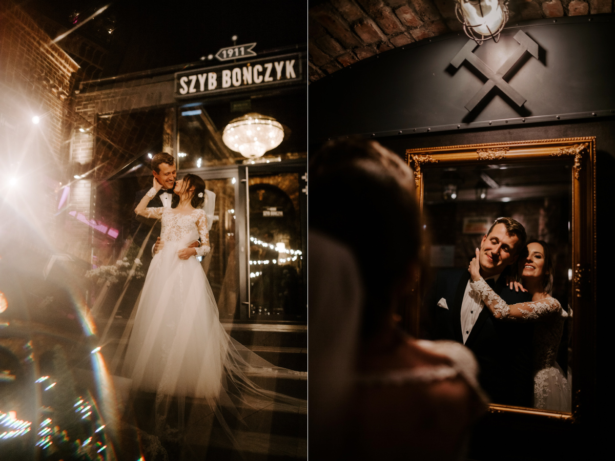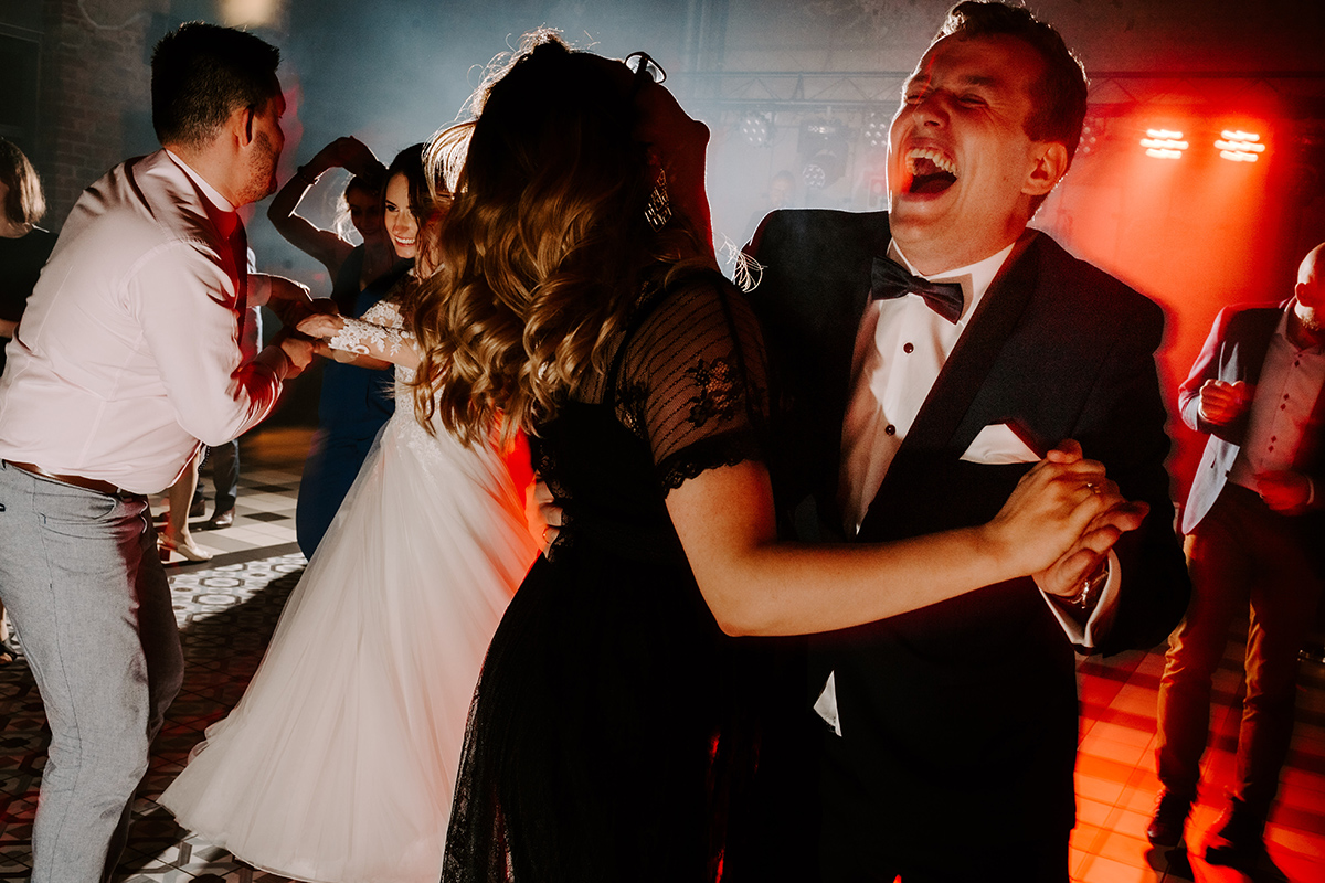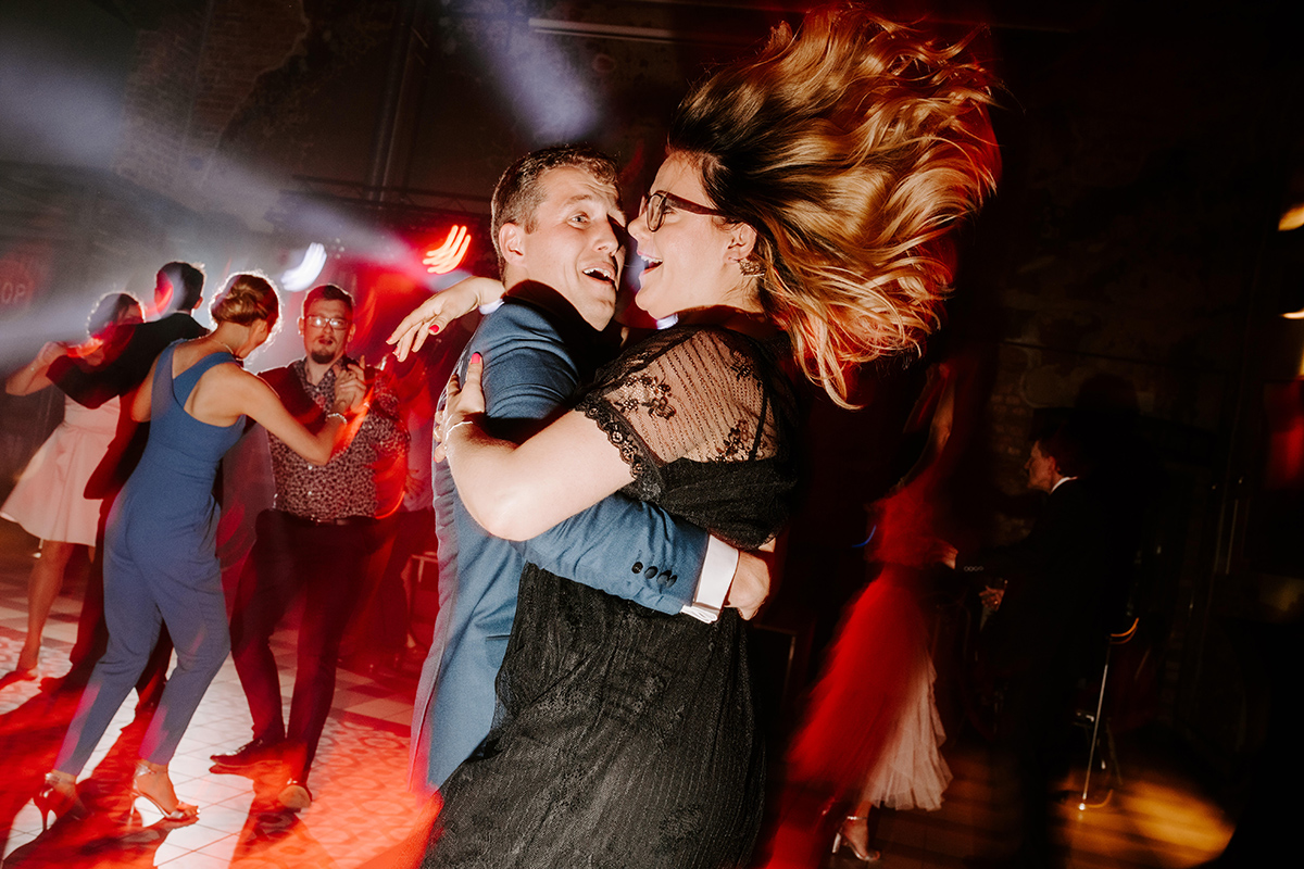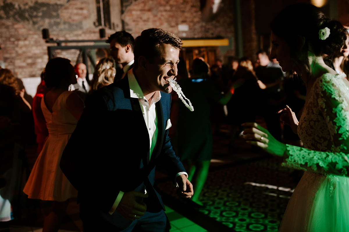 Po wesołej ceremonii gdzie triumfalnie wymienili się pierścieniami mocy popędzili do katowic. Do miejsca z wielką duszą czyli do Szybu Bończyk gdzie odbyła się dalsza część tej Krejzi Nocy. Za szaleństwo odpowiedzialna była ekipa z imprez org na czele z Warjatem Mirasem oraz kobietką w której głosie się zakochałem Olą! Były momenty, że poważnie kompletnie nie wiedziałem gdzie mam na parkiecie być bo szaleństwo było okrutne. Smaczkiem wieczoru był krótki smyczkowy koncert, który dogłębnie poruszył kochane Mamcie Pary Młodej wydobywając z oczek ‘kilka wzruszających łez’.