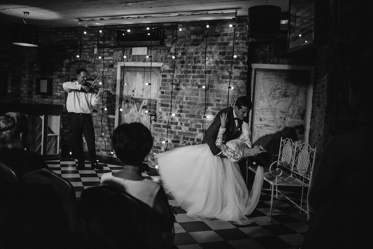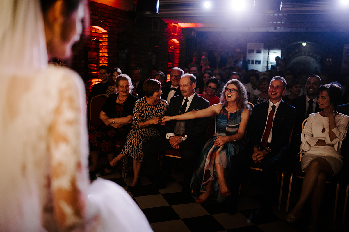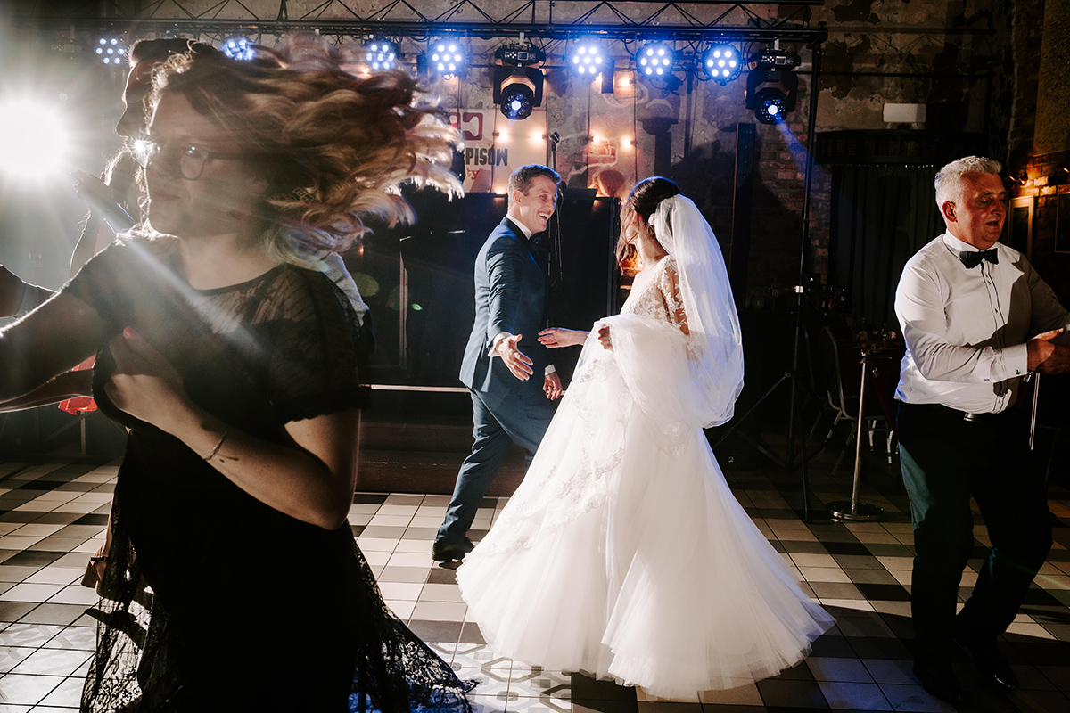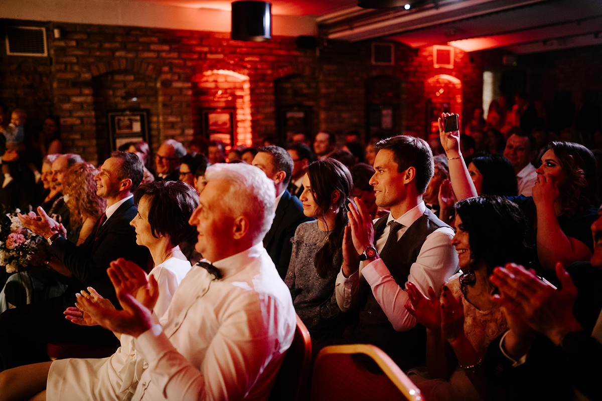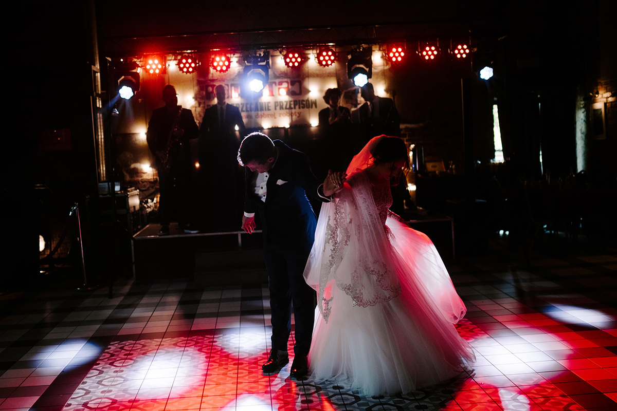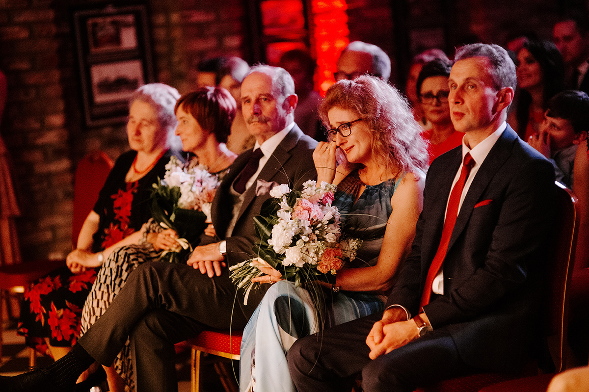 Po wesołej ceremonii gdzie triumfalnie wymienili się pierścieniami mocy popędzili do katowic. Do miejsca z wielką duszą czyli do Szybu Bończyk gdzie odbyła się dalsza część tej Krejzi Nocy. Za szaleństwo odpowiedzialna była ekipa z imprez org na czele z Warjatem Mirasem oraz kobietką w której głosie się zakochałem Olą! Były momenty, że poważnie kompletnie nie wiedziałem gdzie mam na parkiecie być bo szaleństwo było okrutne. Smaczkiem wieczoru był krótki smyczkowy koncert, który dogłębnie poruszył kochane Mamcie Pary Młodej wydobywając z oczek ‘kilka wzruszających łez’.