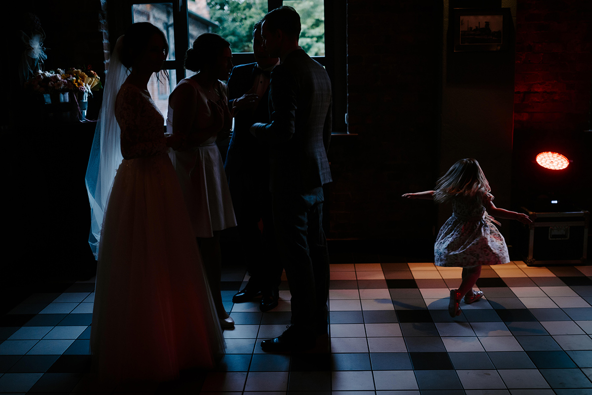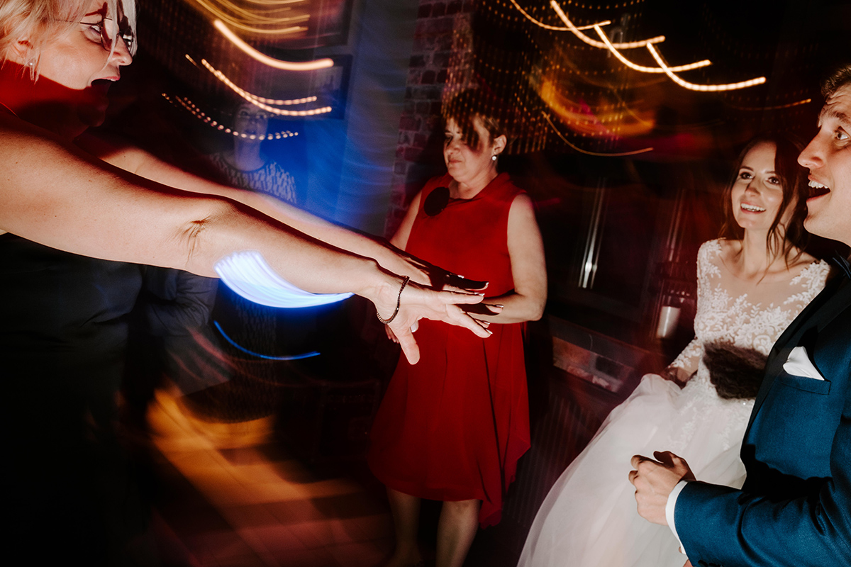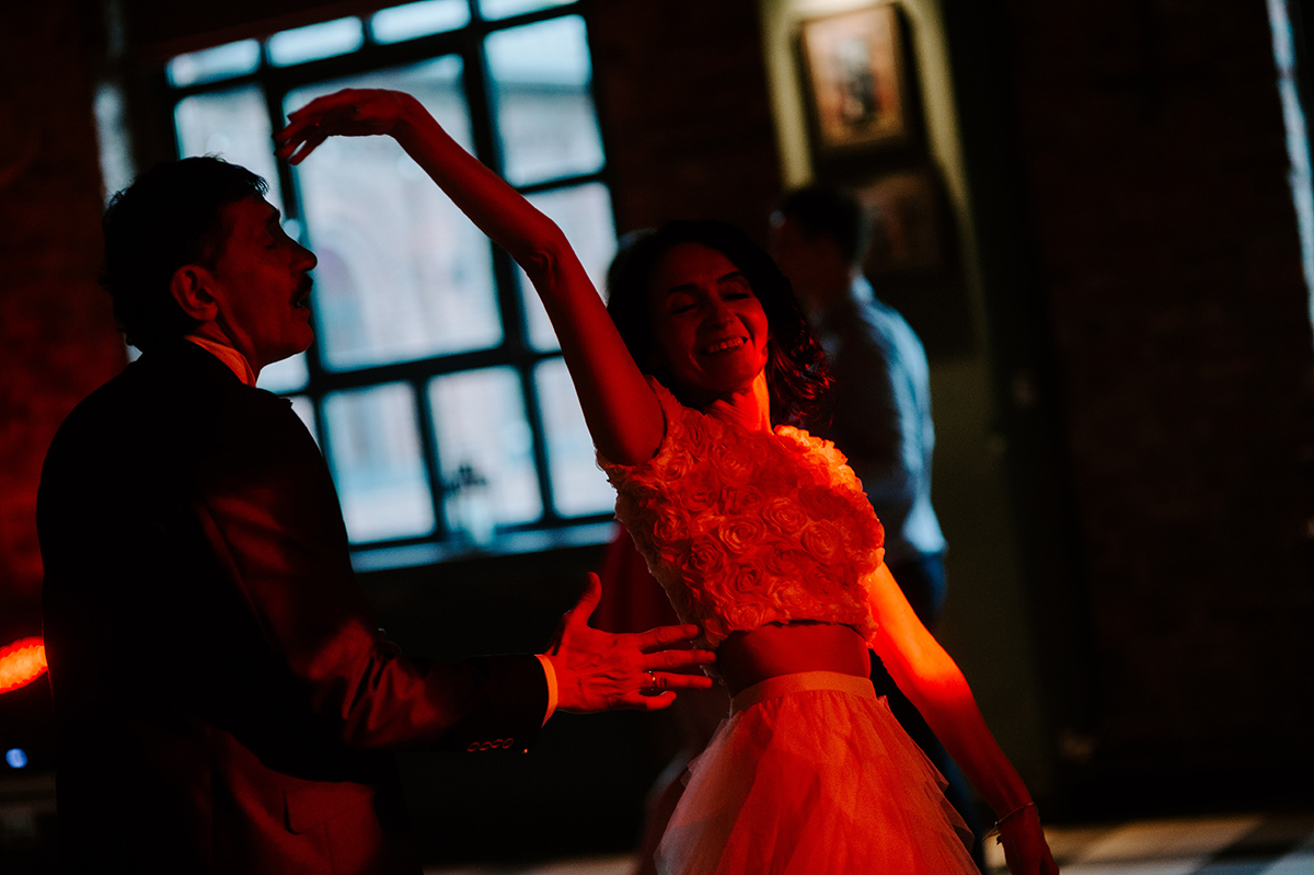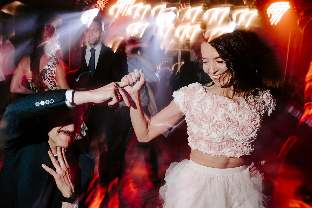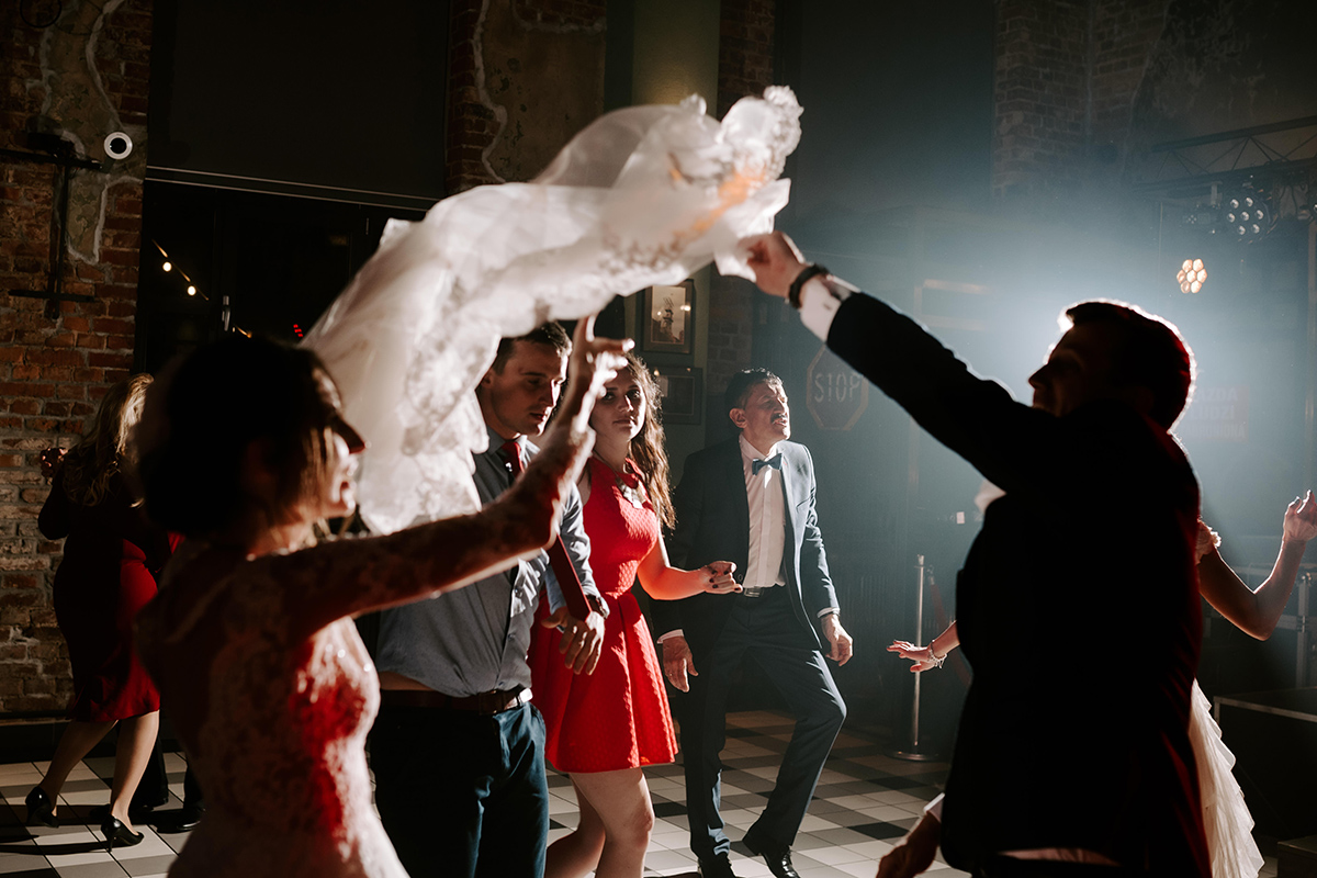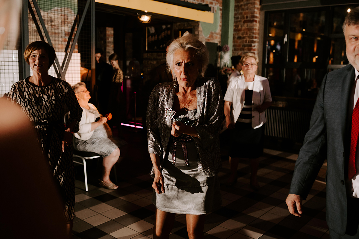 Po wesołej ceremonii gdzie triumfalnie wymienili się pierścieniami mocy popędzili do katowic. Do miejsca z wielką duszą czyli do Szybu Bończyk gdzie odbyła się dalsza część tej Krejzi Nocy. Za szaleństwo odpowiedzialna była ekipa z imprez org na czele z Warjatem Mirasem oraz kobietką w której głosie się zakochałem Olą! Były momenty, że poważnie kompletnie nie wiedziałem gdzie mam na parkiecie być bo szaleństwo było okrutne. Smaczkiem wieczoru był krótki smyczkowy koncert, który dogłębnie poruszył kochane Mamcie Pary Młodej wydobywając z oczek ‘kilka wzruszających łez’.