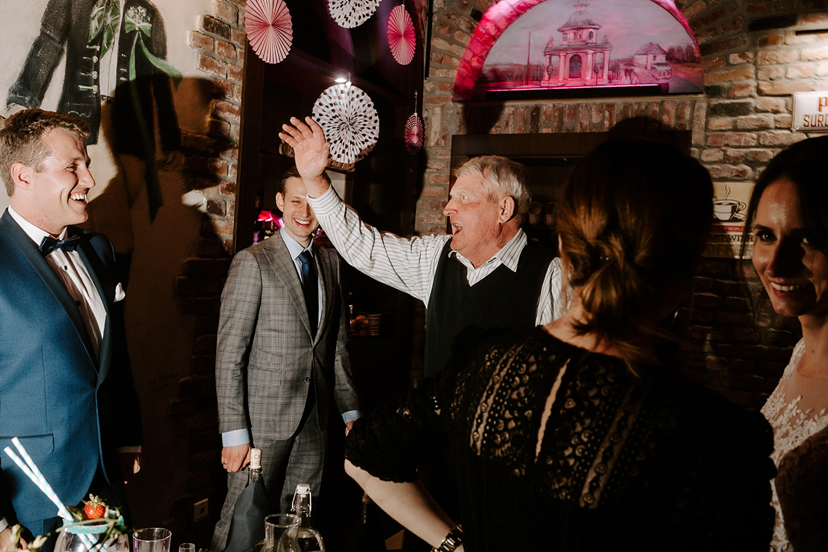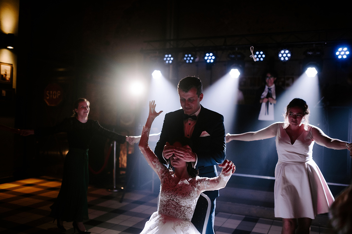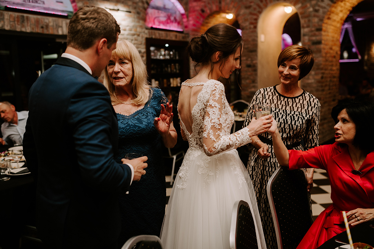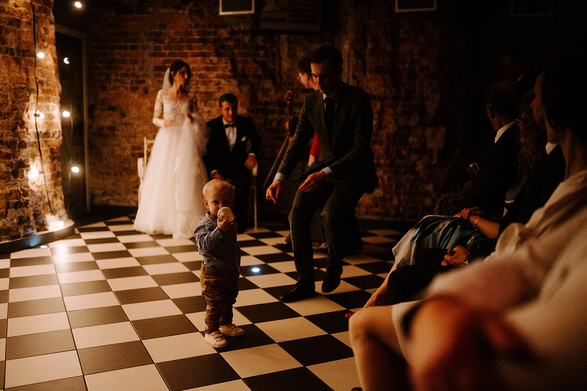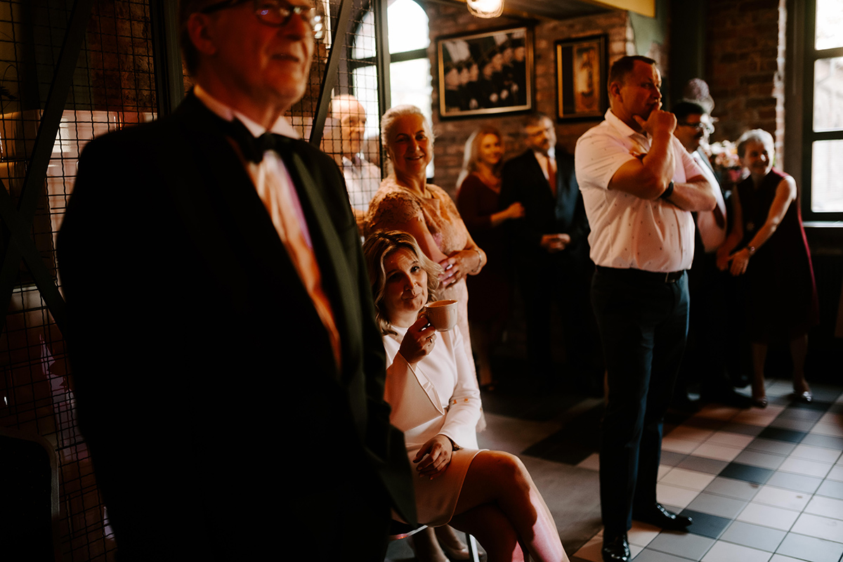 Po wesołej ceremonii gdzie triumfalnie wymienili się pierścieniami mocy popędzili do katowic. Do miejsca z wielką duszą czyli do Szybu Bończyk gdzie odbyła się dalsza część tej Krejzi Nocy. Za szaleństwo odpowiedzialna była ekipa z imprez org na czele z Warjatem Mirasem oraz kobietką w której głosie się zakochałem Olą! Były momenty, że poważnie kompletnie nie wiedziałem gdzie mam na parkiecie być bo szaleństwo było okrutne. Smaczkiem wieczoru był krótki smyczkowy koncert, który dogłębnie poruszył kochane Mamcie Pary Młodej wydobywając z oczek ‘kilka wzruszających łez’.