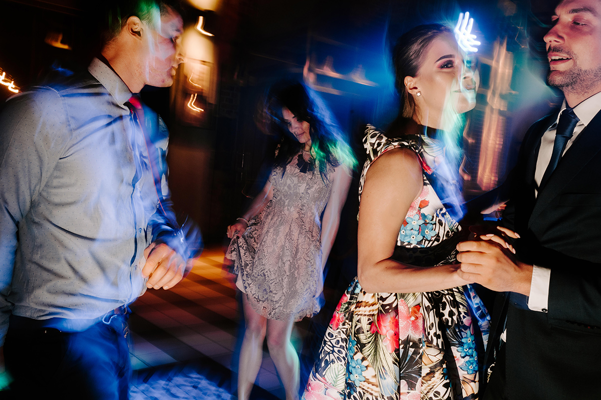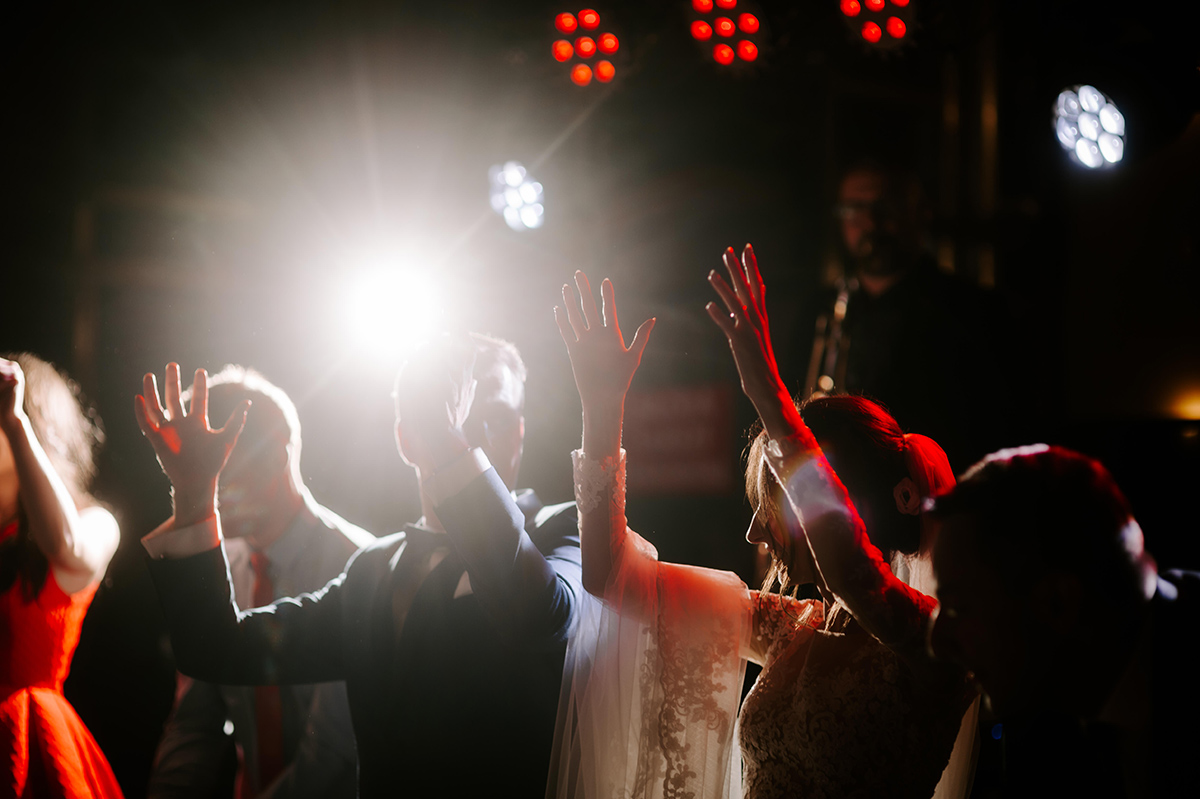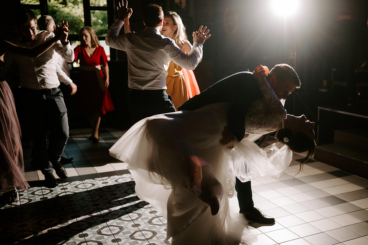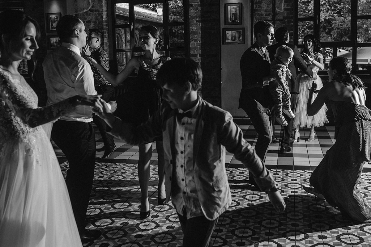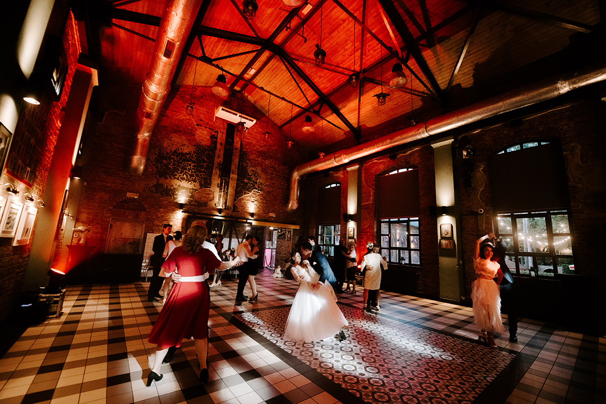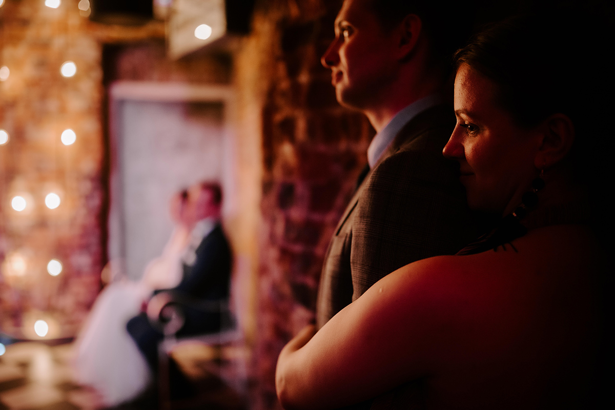 Po wesołej ceremonii gdzie triumfalnie wymienili się pierścieniami mocy popędzili do katowic. Do miejsca z wielką duszą czyli do Szybu Bończyk gdzie odbyła się dalsza część tej Krejzi Nocy. Za szaleństwo odpowiedzialna była ekipa z imprez org na czele z Warjatem Mirasem oraz kobietką w której głosie się zakochałem Olą! Były momenty, że poważnie kompletnie nie wiedziałem gdzie mam na parkiecie być bo szaleństwo było okrutne. Smaczkiem wieczoru był krótki smyczkowy koncert, który dogłębnie poruszył kochane Mamcie Pary Młodej wydobywając z oczek ‘kilka wzruszających łez’.