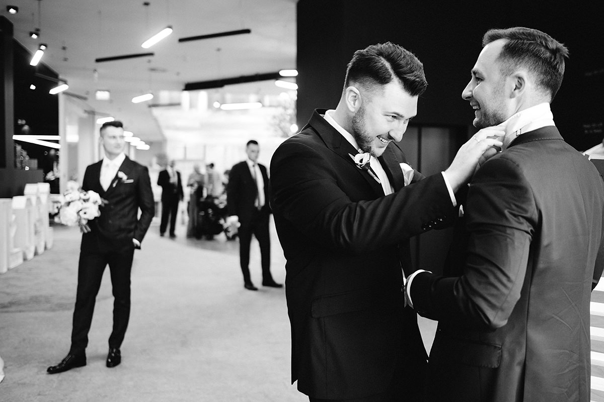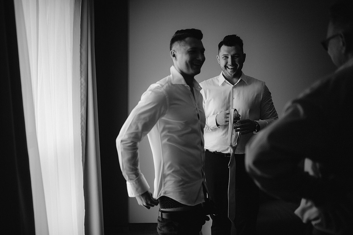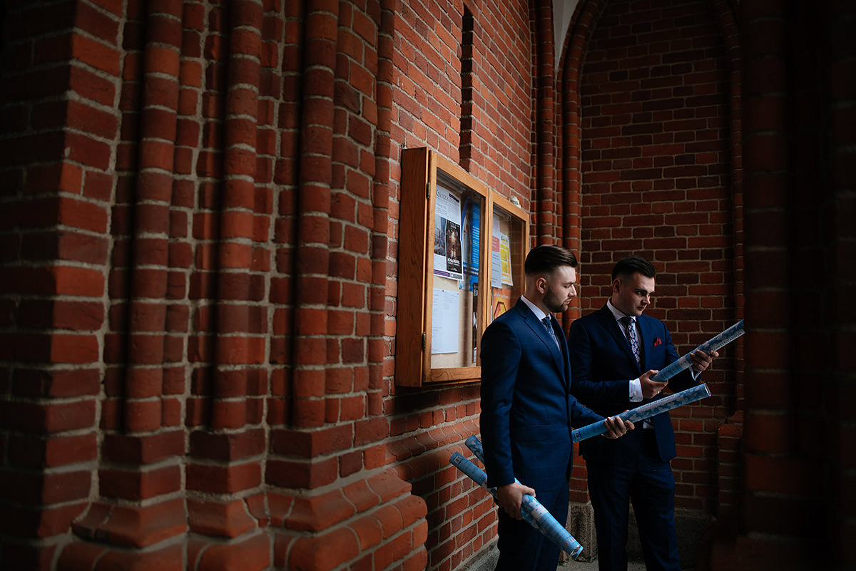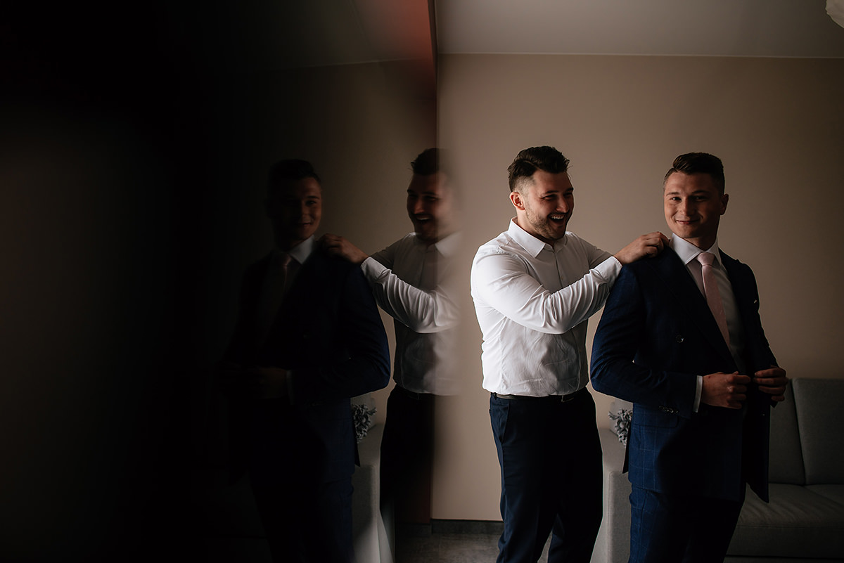 Kiedy już została pięknie umalowana i uloczkowana przyszła kolej na Młodego. Kondzio z danych usłyszanych od wielu dam wygląda jak z reklamy vistuli i ciężko się z tym nie zgodzić. Swoje muskuły odział dwurzędowym garniturem i wyglądał jak z reklamy vistuli. Szybki emocjonalny uścisk od Mamci i był gotowy na przyjęcie gpsa ;)