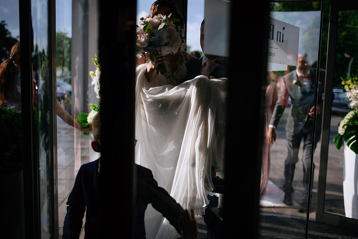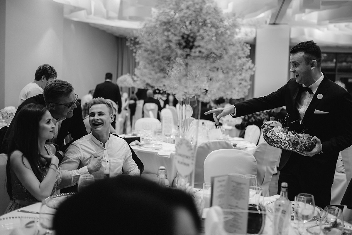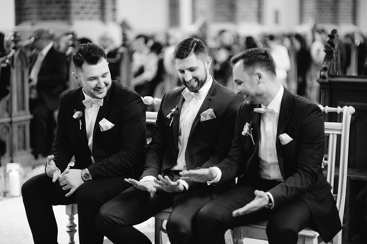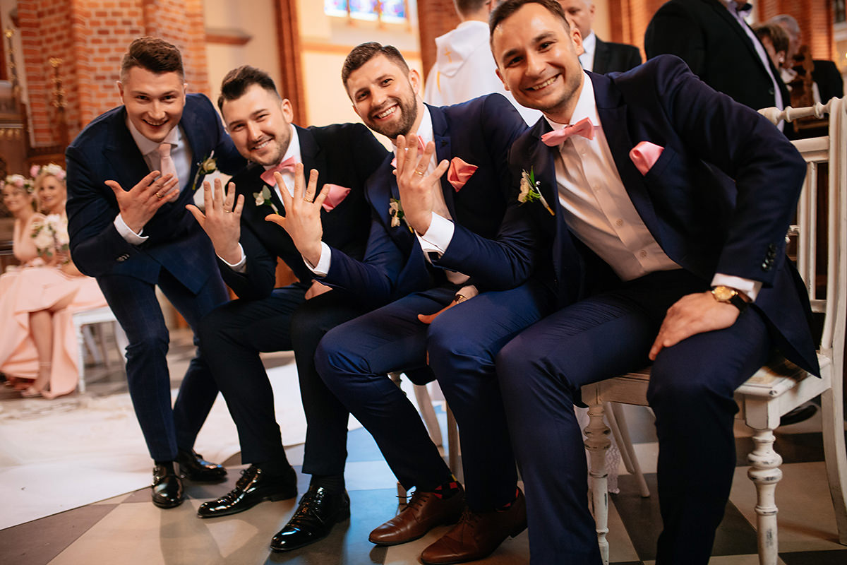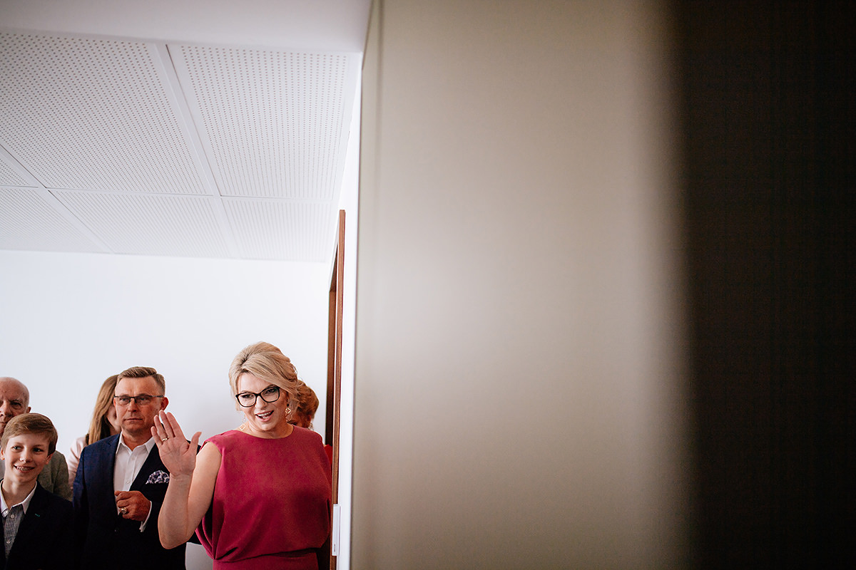 Następnie ceremonia z wesołą przysięgą. Dzięki takiej jednej literówce w trakcie wypowiadania ‚kluczowych’ słów ciśnienie spadło i banany z buziek już nie schodziły. Gest zwycięstwa i można było z powrotem wsiadać w ślubną niemiecką rakietę by popędzić na salę gdzie to działo się wieeeeele.