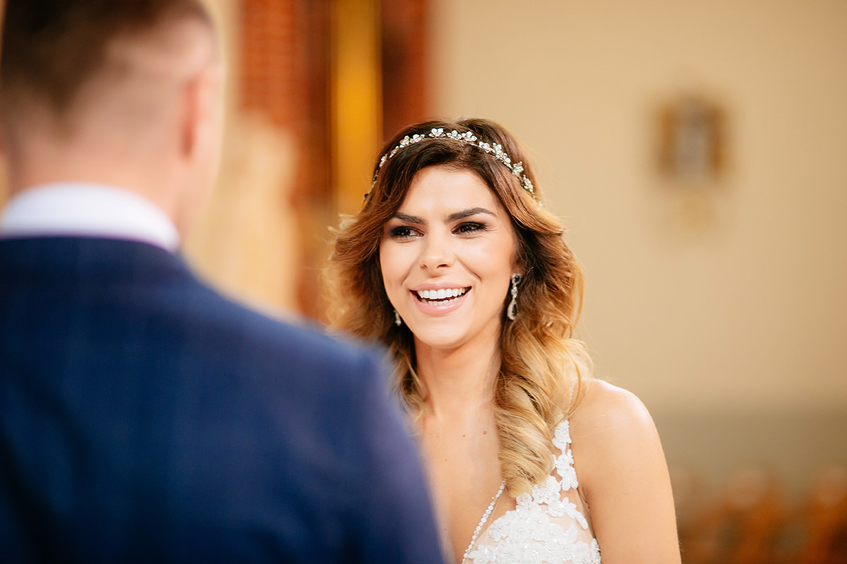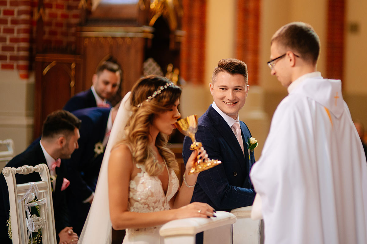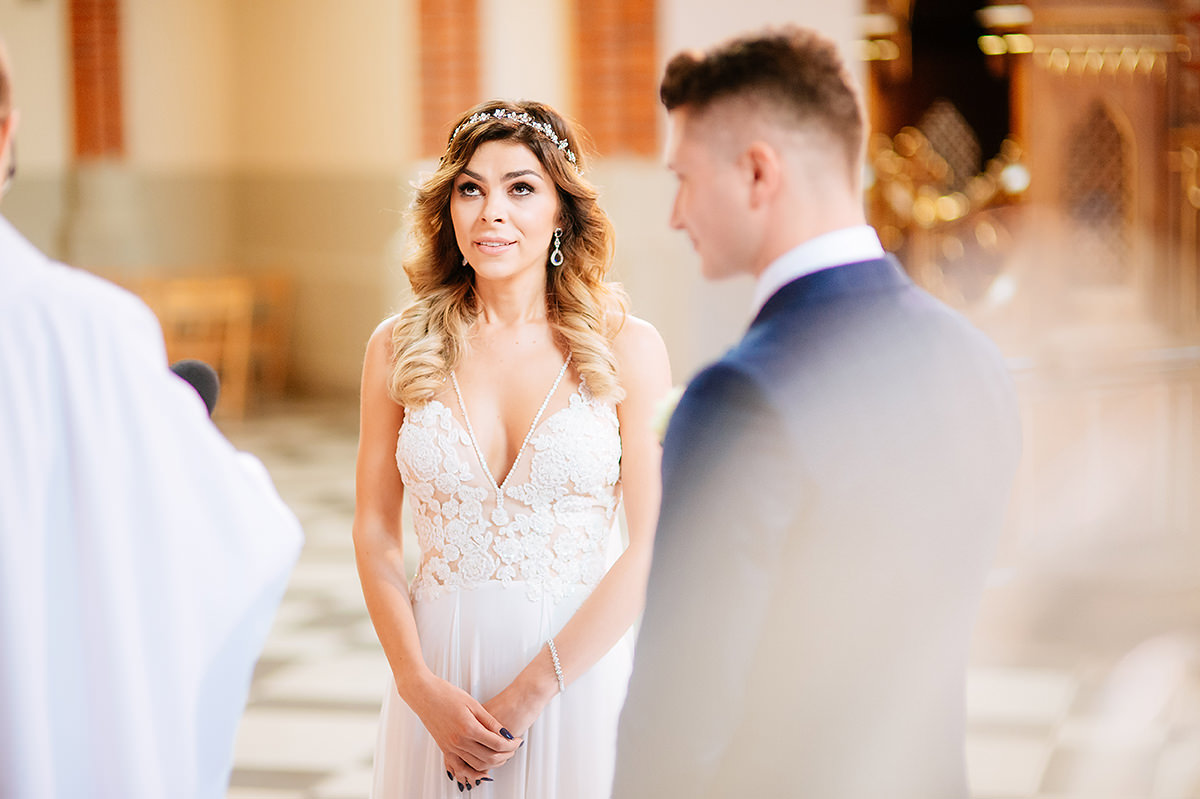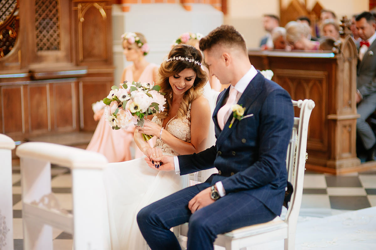 Przeiskry w oczach się pojawiły jak zobaczyli siebie… kilka chwil później na oczach wszystkich zebranych pojawiły się łzy wzruszenia. Sporo husteczek było potrzebnych w trakcie błogosławieństwa trzeba przyznać… kwintesencja ślubów moim skromnym zdaniem. Tutaj wszystko zaplanowane i idealnie zrealizowane a tu serducho płata figla…